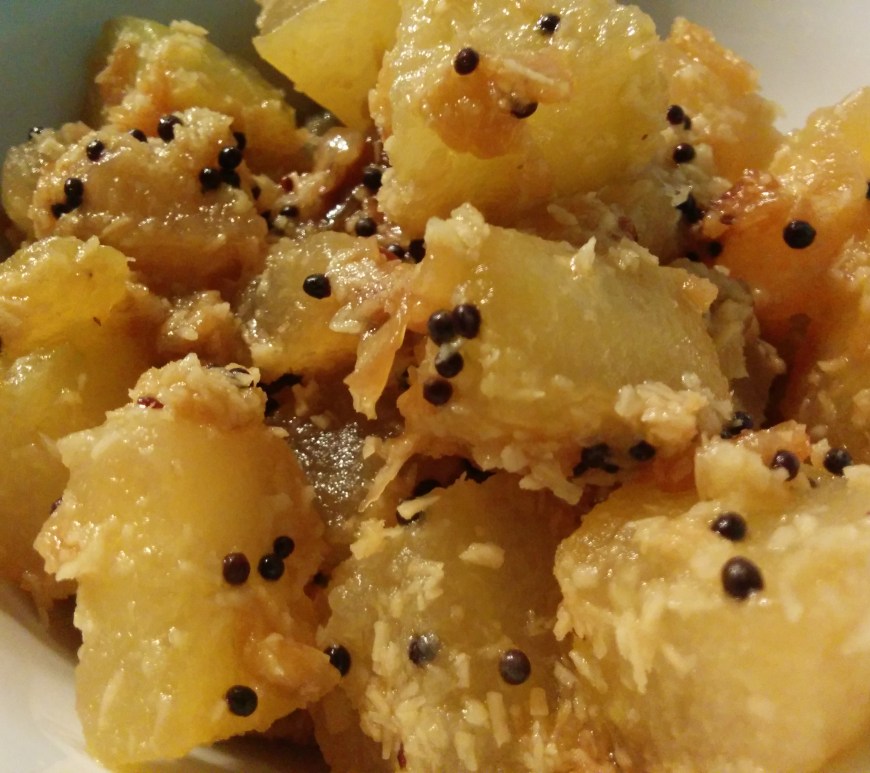Bottle Gourd, long marrow, calabash, the many names for this interesting vegetable. It  contains many vitamins and minerals, such as, calcium, magnesium, phosphorus, Vitamin A, C and folate. So why not buy it when you see it at your green grocer or better still try growing some yourself. Our neighbours Peter and Amy grew this large vegetable and our friend Ann kindly shared her recipe for … Continue reading Ann’s Bottle Gourd with Coconut