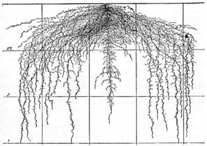 Root system of mature pea plant