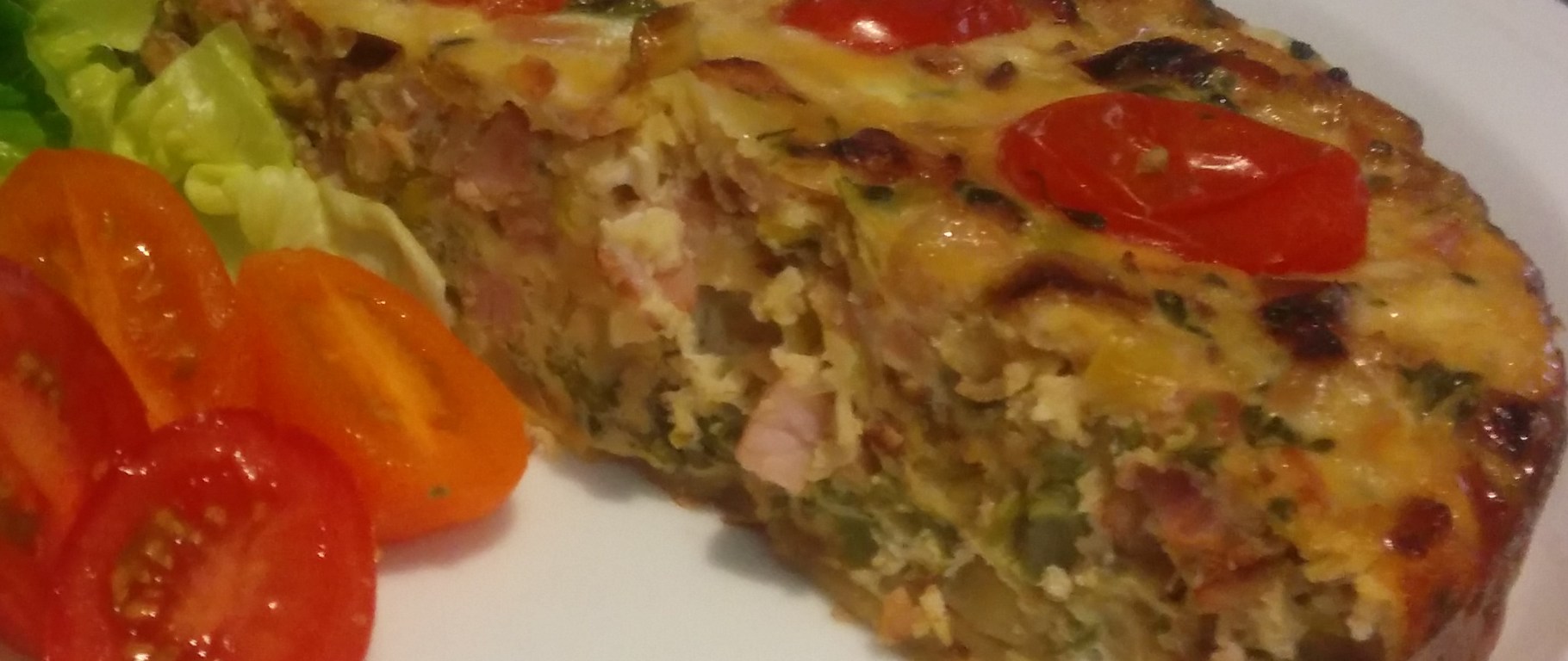 Making an egg, bacon and vegetable pie is a perfect way to use any leftover vegetables that you may have in your fridge. Here we have used broccolini, and leeks and potato from the garden.