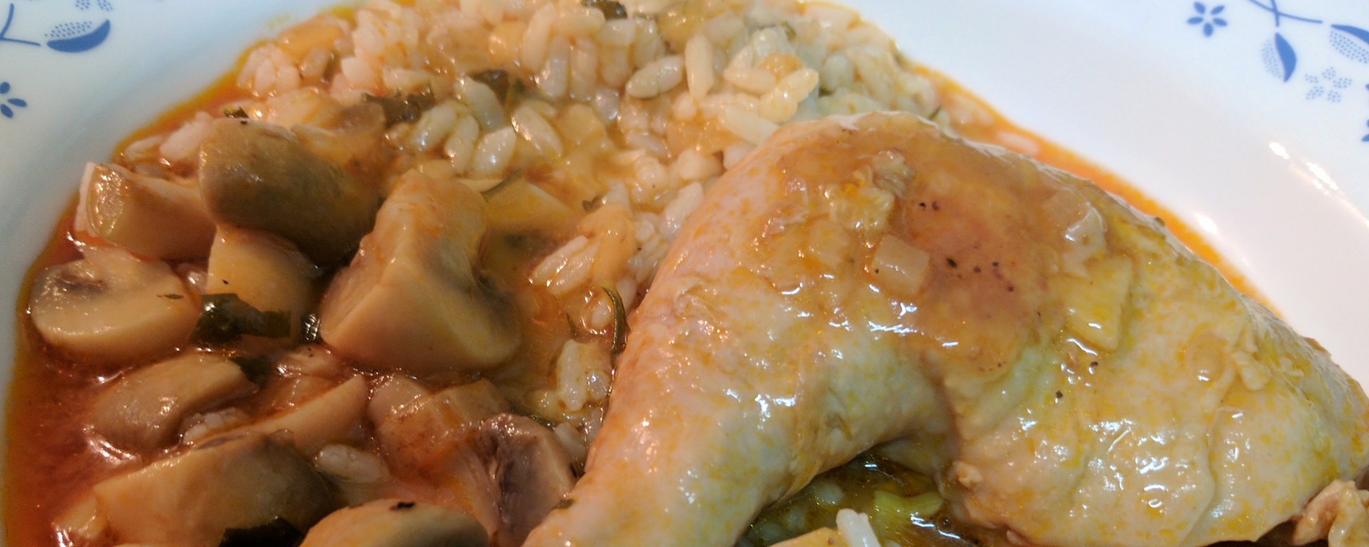 Chicken and mushrooms in a light tomato and white wine sauce makes a lovely warming meal in winter and can be enjoyed any time of year. This dish can be served with rice, polenta or mashed potatoes or on its own with a green garden salad. I have included the recipe for making the rice that is served with my chicken.