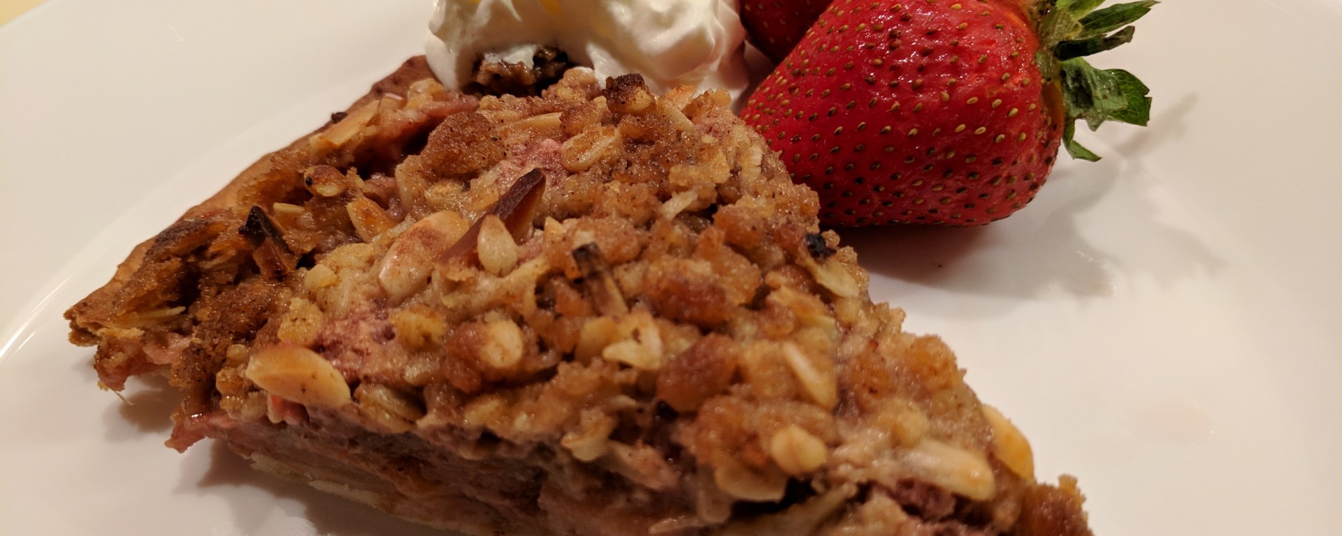 Strawberry, Apple and Rhubarb Crumble Pie: