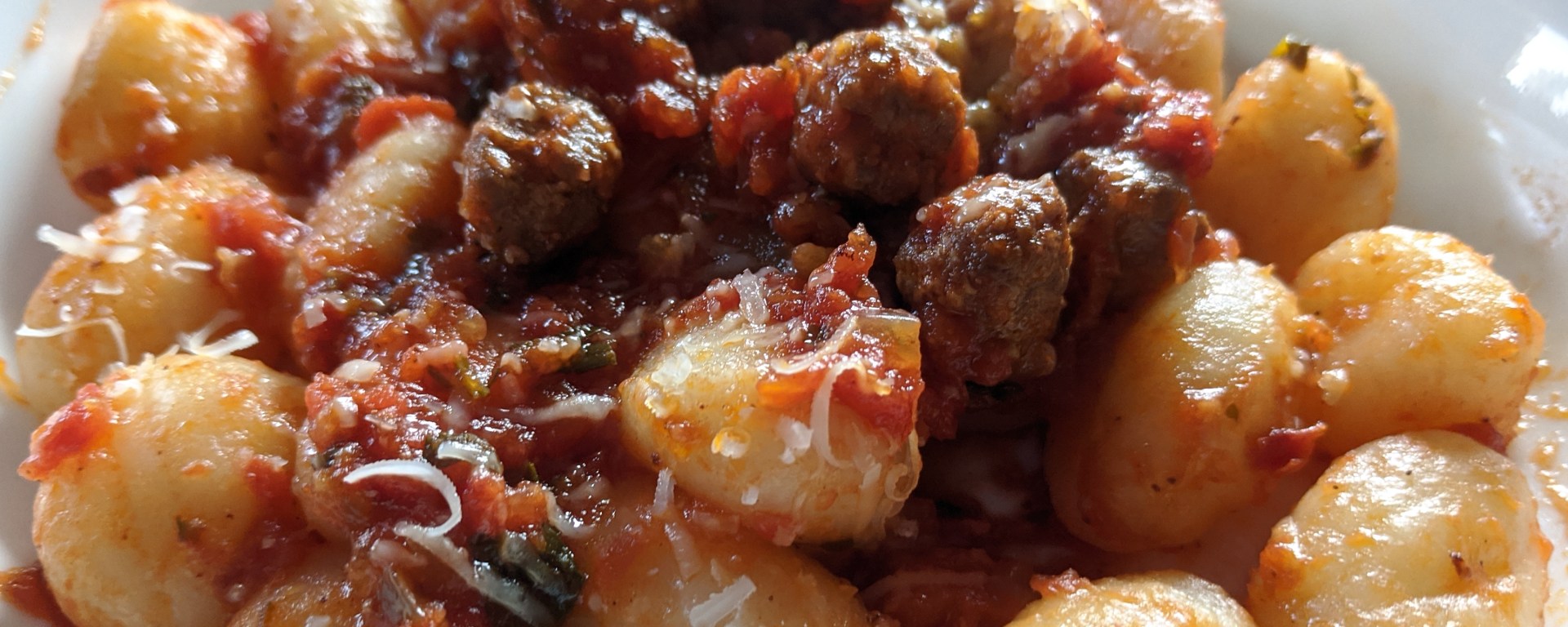 I have used my sugo di polpettine alla Teramana in a non traditional way on gnocchi. It it was so nice to find the tender little bites of meat in the tasty sauce and they didn’t overwhelm the overall texture of the gnocchi.