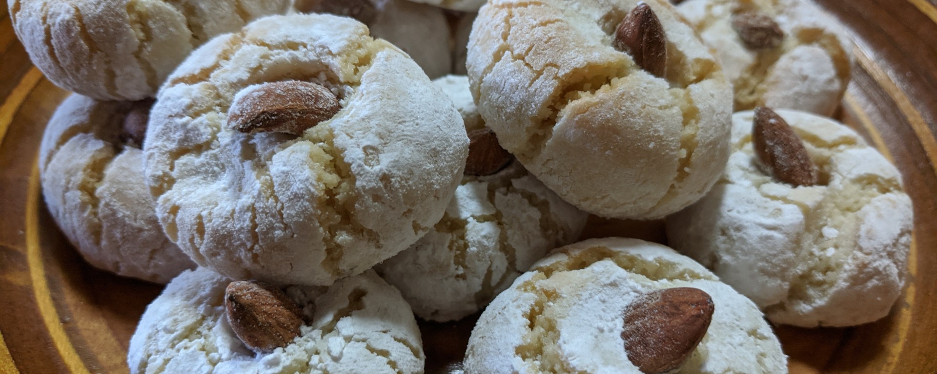 These delightful little biscuits are crunchy on the outside with a lovely, soft almond centre. They are just perfect with for that cup of tea or coffee. You may not be able to stop at one!