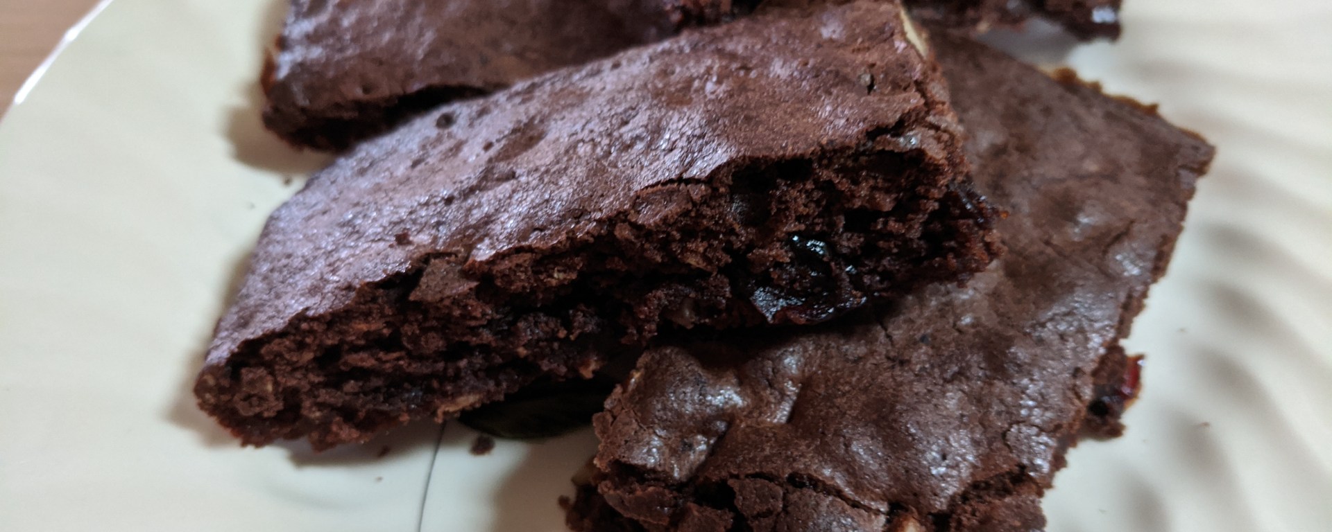 Dark cocoa, brandied fruit and nuts combine to make this delicious slice. The fruit gives moisture and the nuts give a lovely crunch. The orange zest and brandy used to soak the fruit adds flavour.