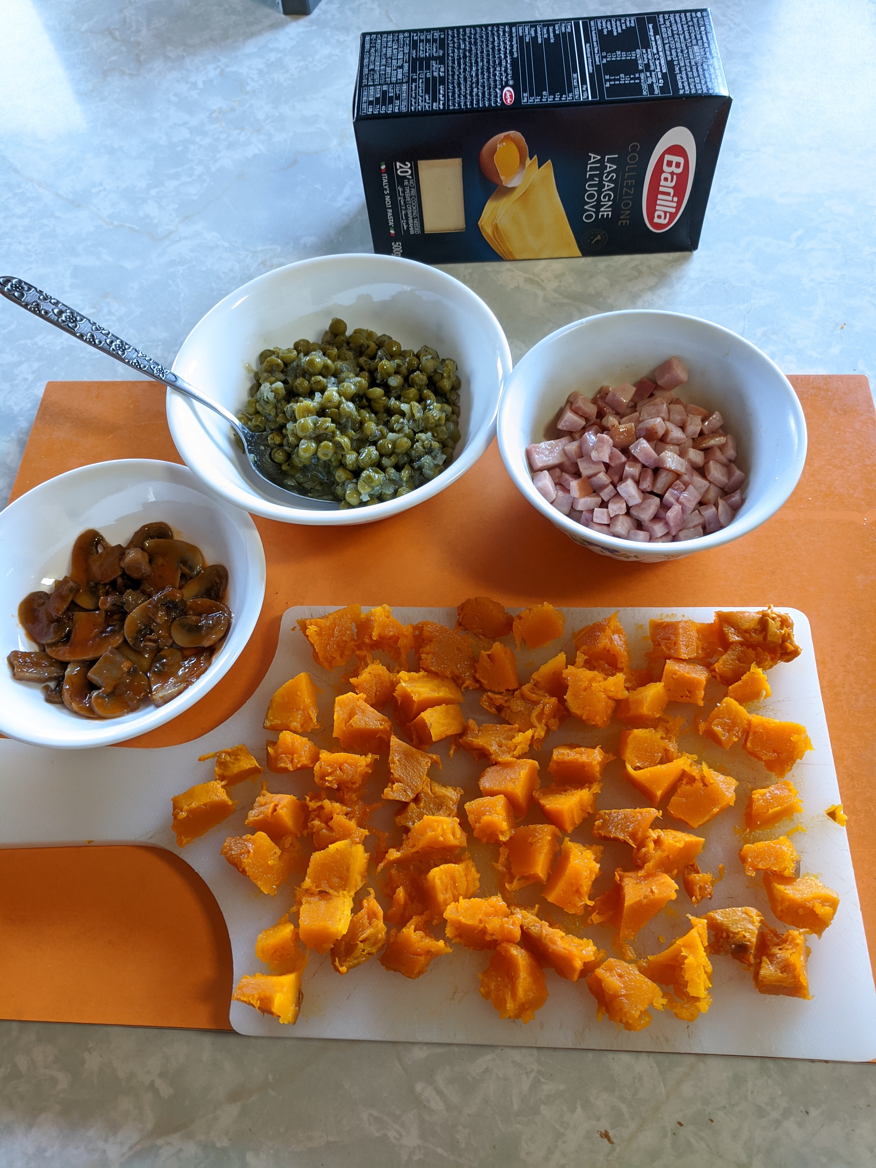 Roast Pumpkin, Pea and Ham Lasagna