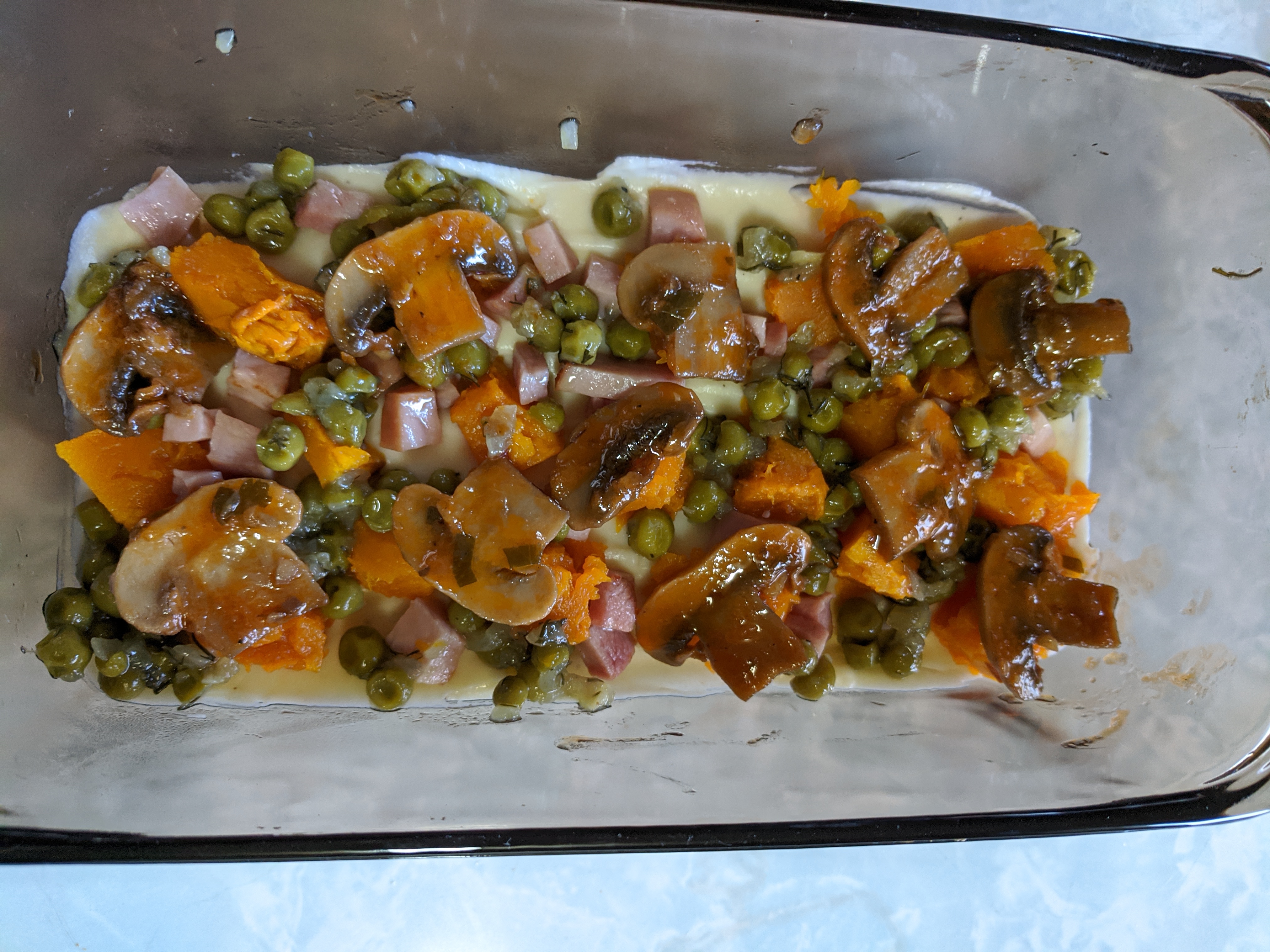 - Place pieces of pumpkin over the bechamel