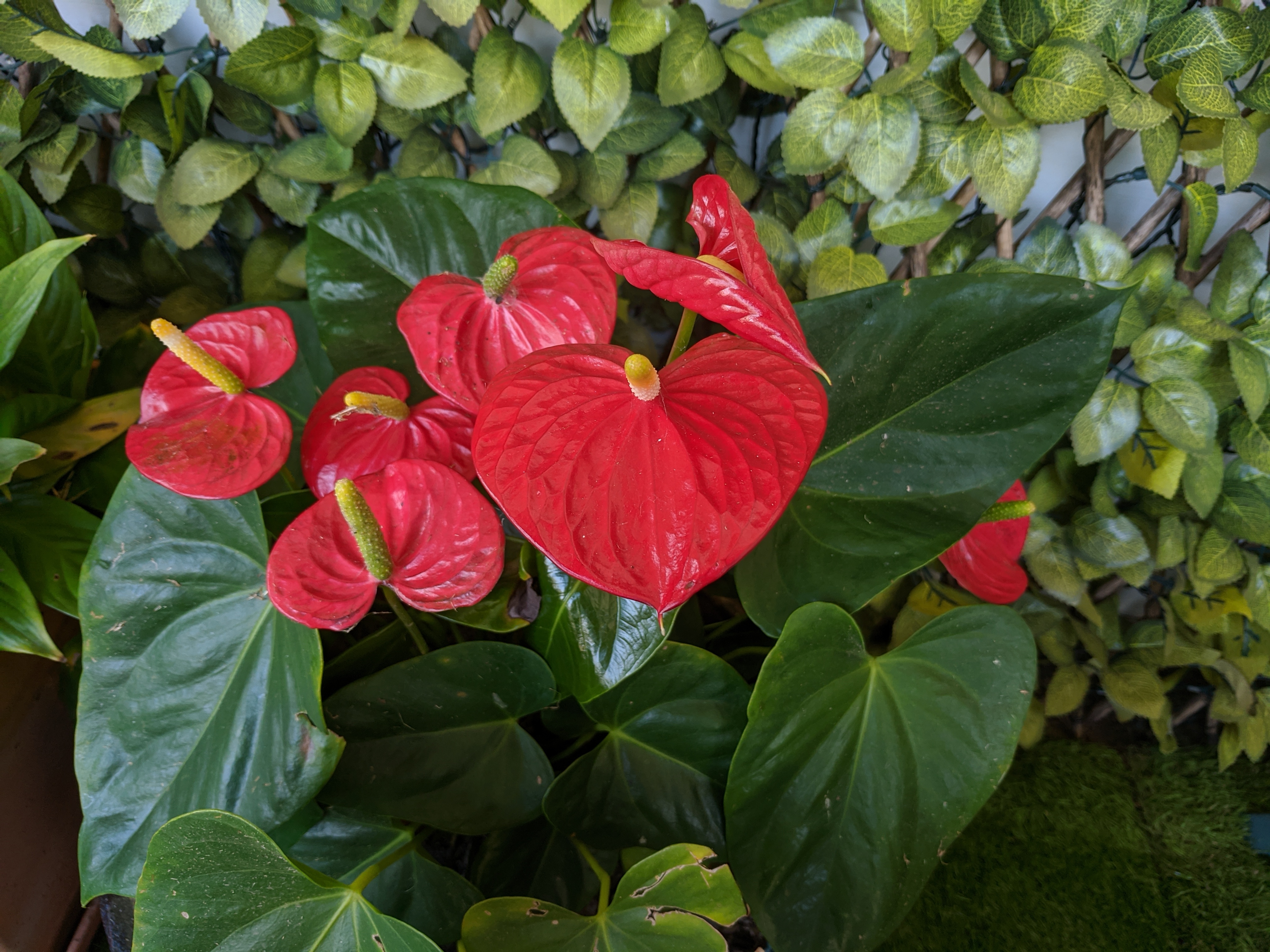 In the right conditions and adequate light the anthurium flowers throughout the year, making it a very attractive indoor or outdoor plant.