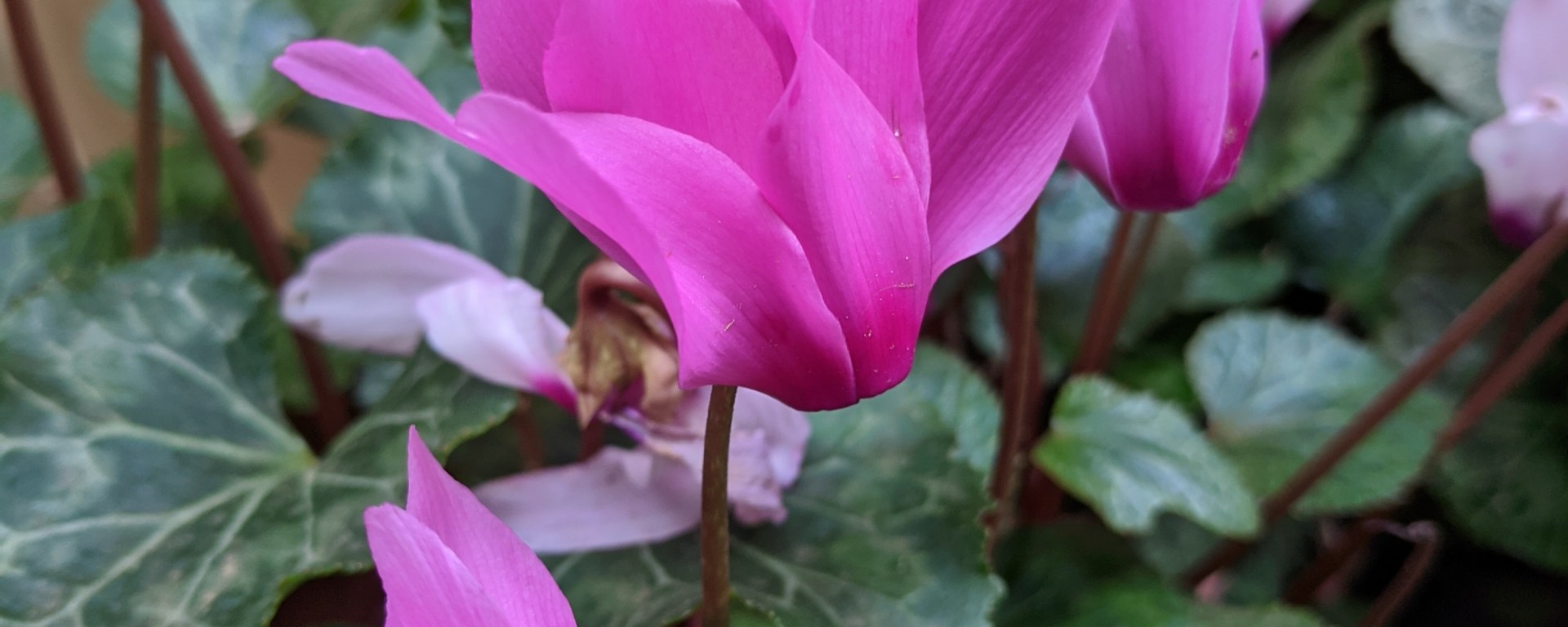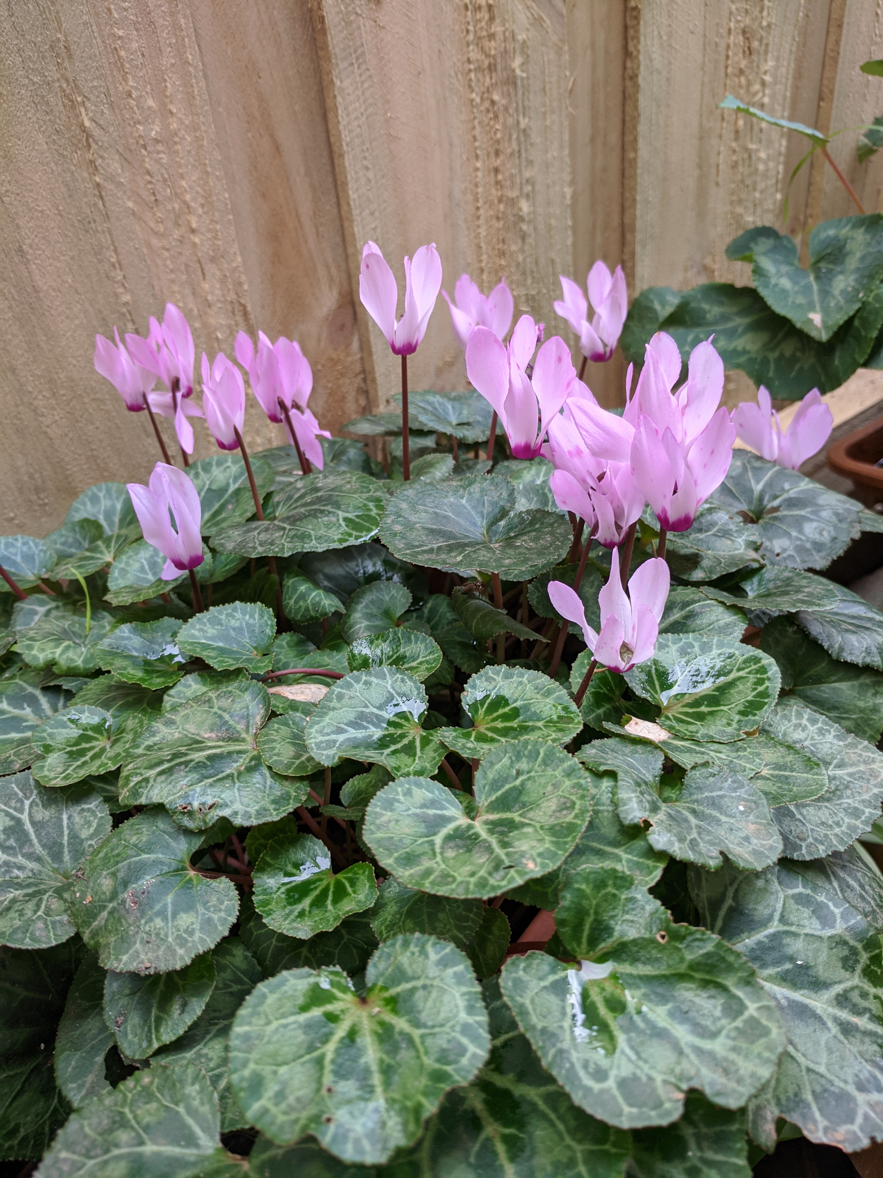 Sometimes small and delicate or bold and showy, often with a beautiful perfume, their colour, their beautiful variegated leaves, yes the cyclamen always brings joy during the depths of our winters.