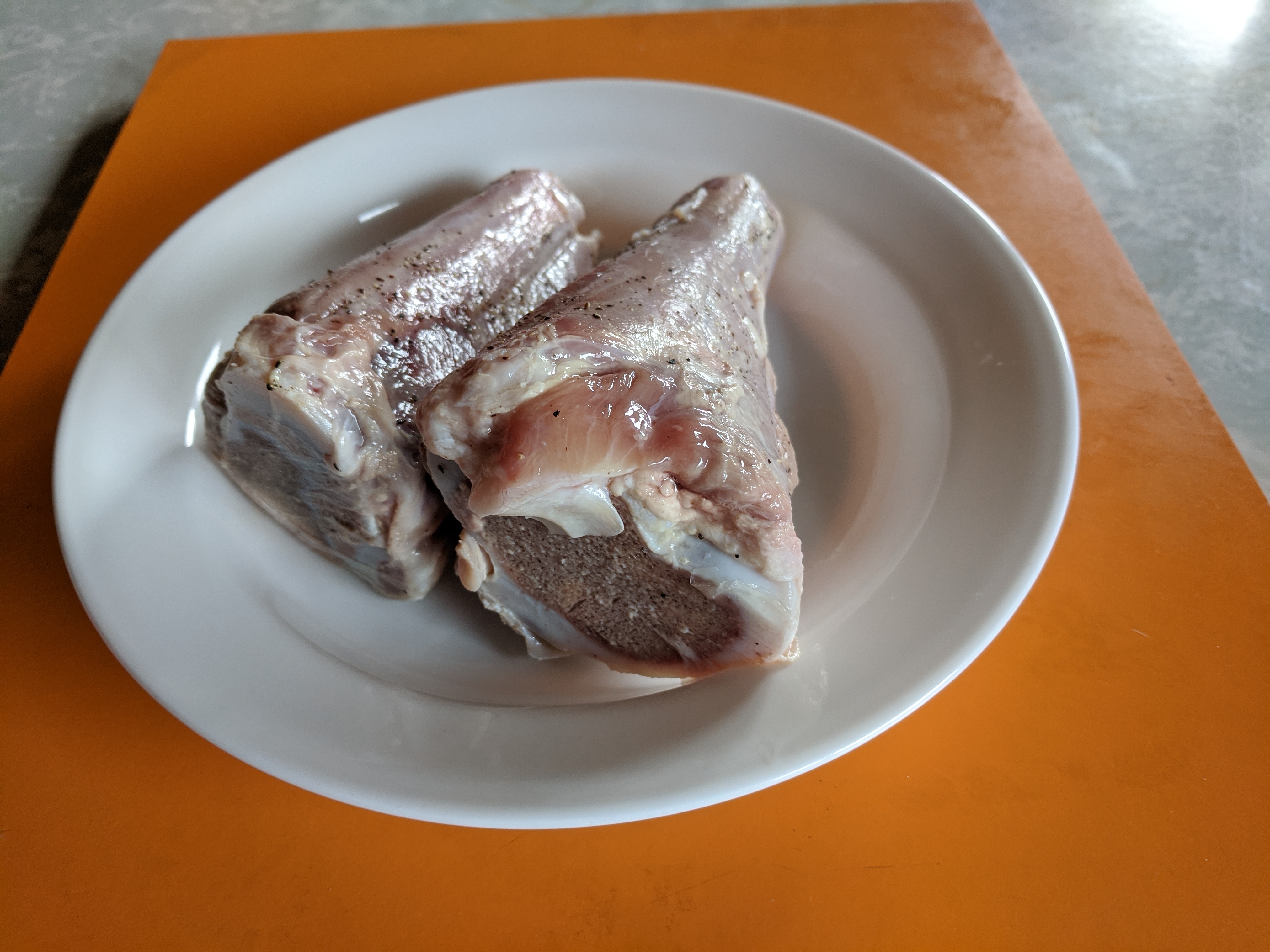 - 1/4 cup dry white wine + enough dry white wine to cover the shanks in a 1L plastic container