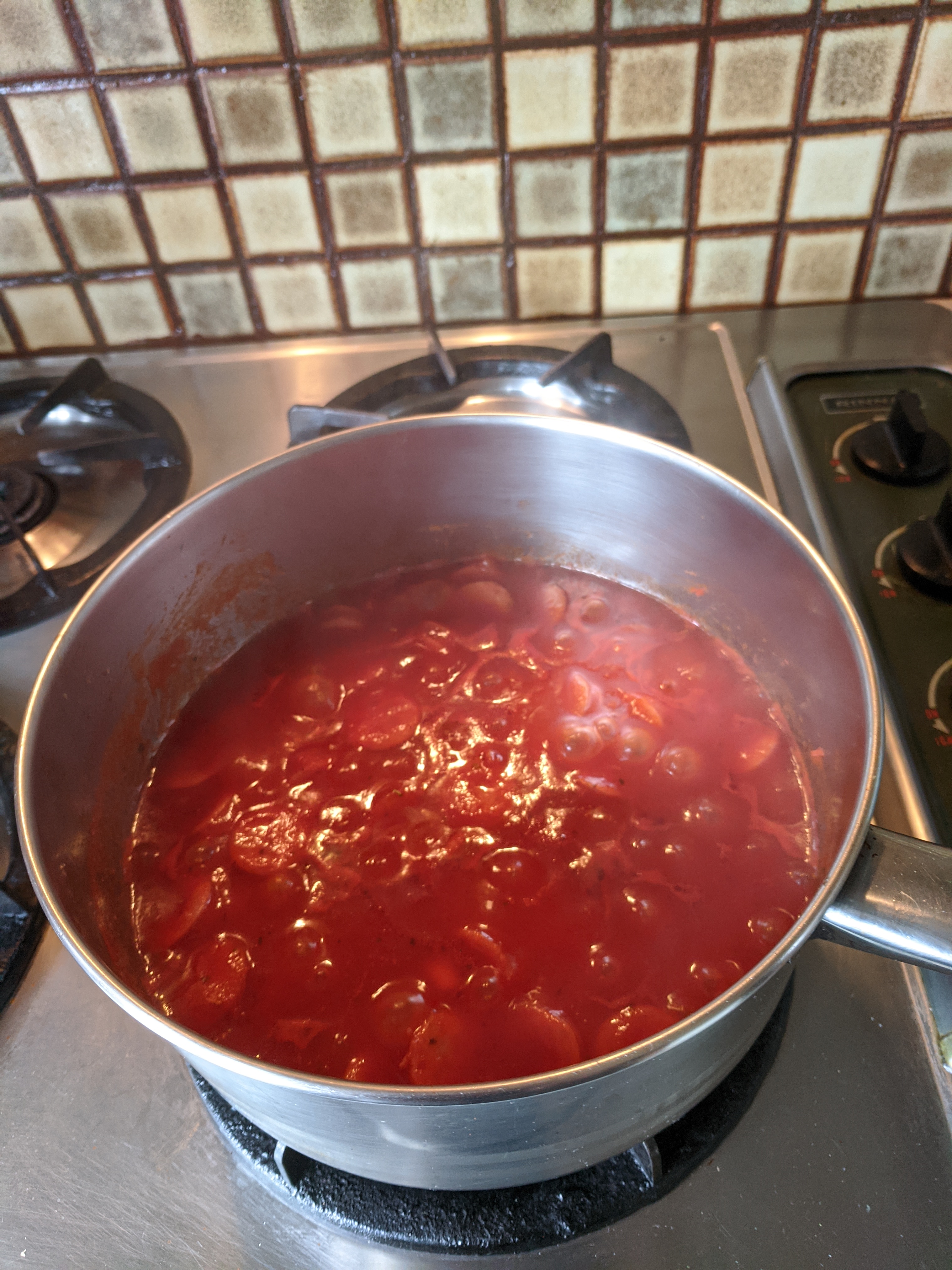 9. After bringing the mixture to the boil, reduce the heat to simmer and cook for 12 minutes