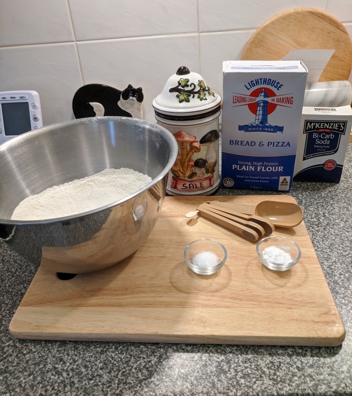 - 1 3/4 cups high protein bread plain flour