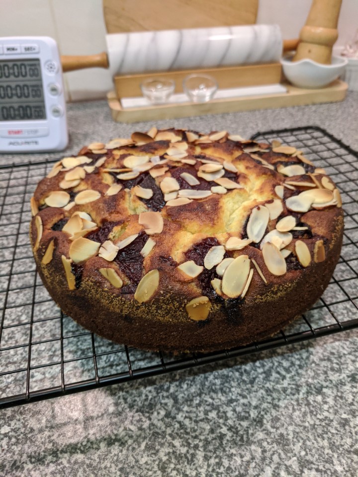 Plum and ricotta cake is a lovely mixture of flavourful spiced plums, and is delicately flavoured with lemon zest and vanilla and topped with the light crunch of flaked almonds. It is light with a slightly more dense texture than other lemon cakes. The blend of the spicy plums is perfect for the moist, rich tasting ricotta cake.