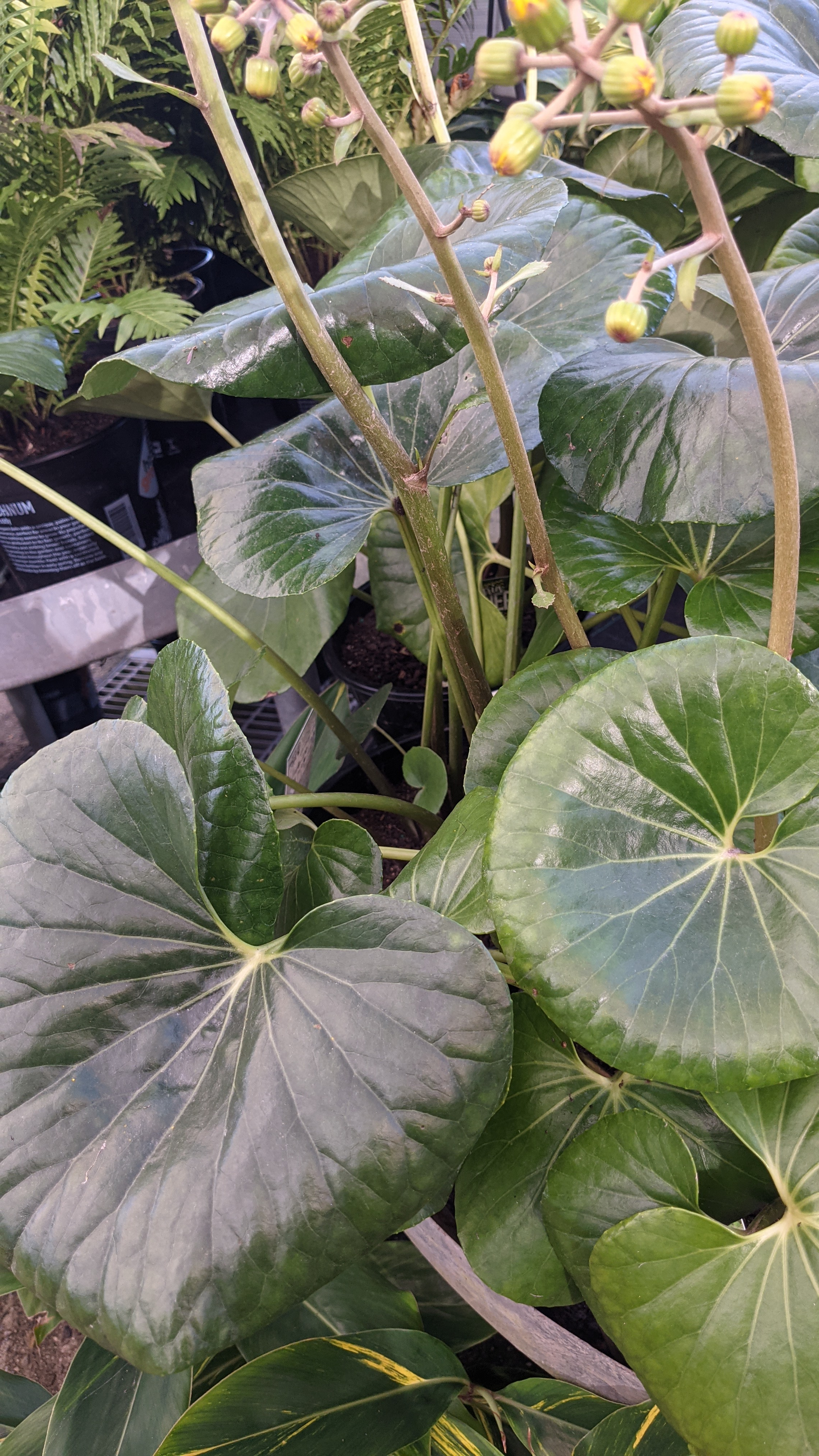 Ligularia reniformis, known also known as the tractor seat plant, due it’s enormous glossy leaves that perfectly resemble an old fashioned tractor seat, is a lush evergreen perennial.