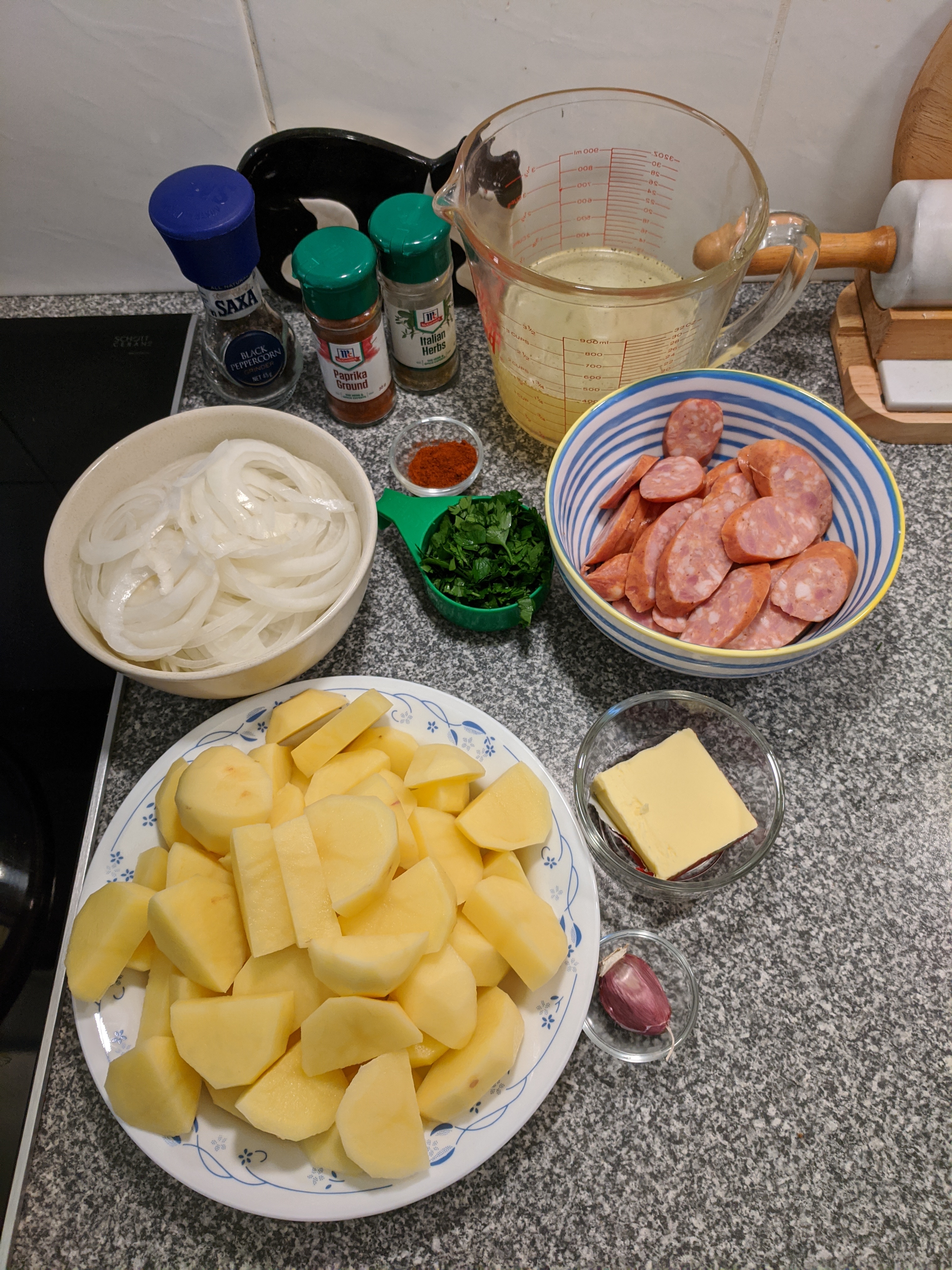 - 250g Smoked Kransky sausages, sliced diagonally