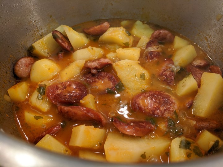 Smoked Kransky, Potato and Tomato Stew