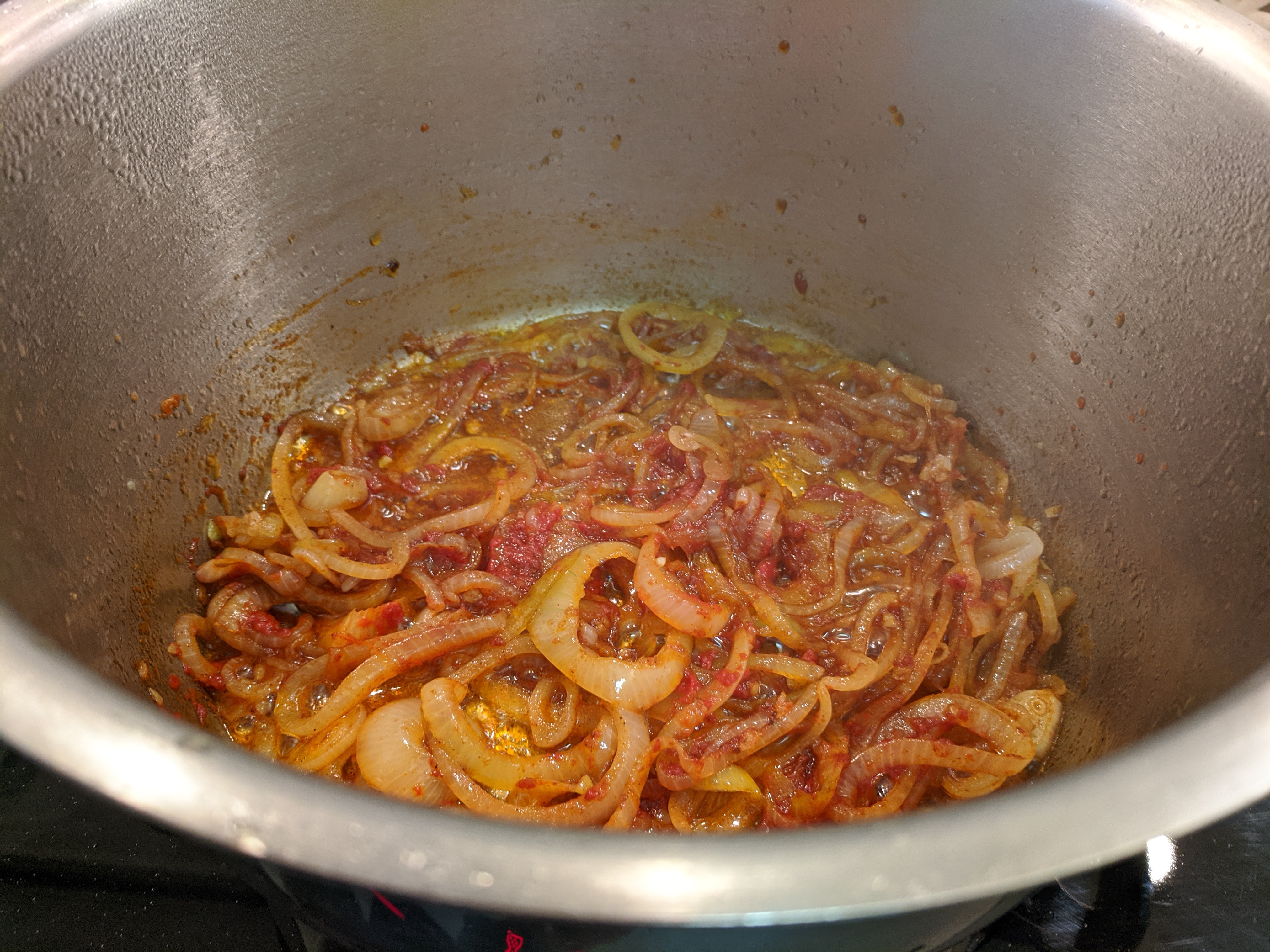 6.When the onions are cooked, add the minced garlic, and cook for a further minute.