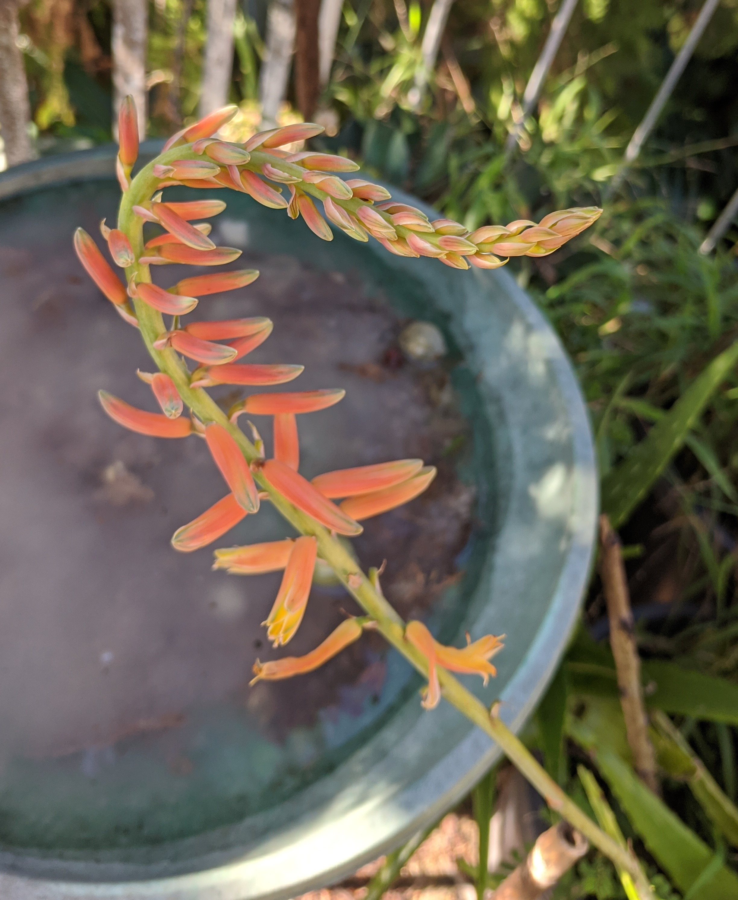 The lovely orange tubular flowers of the Aloe vera chinensis.