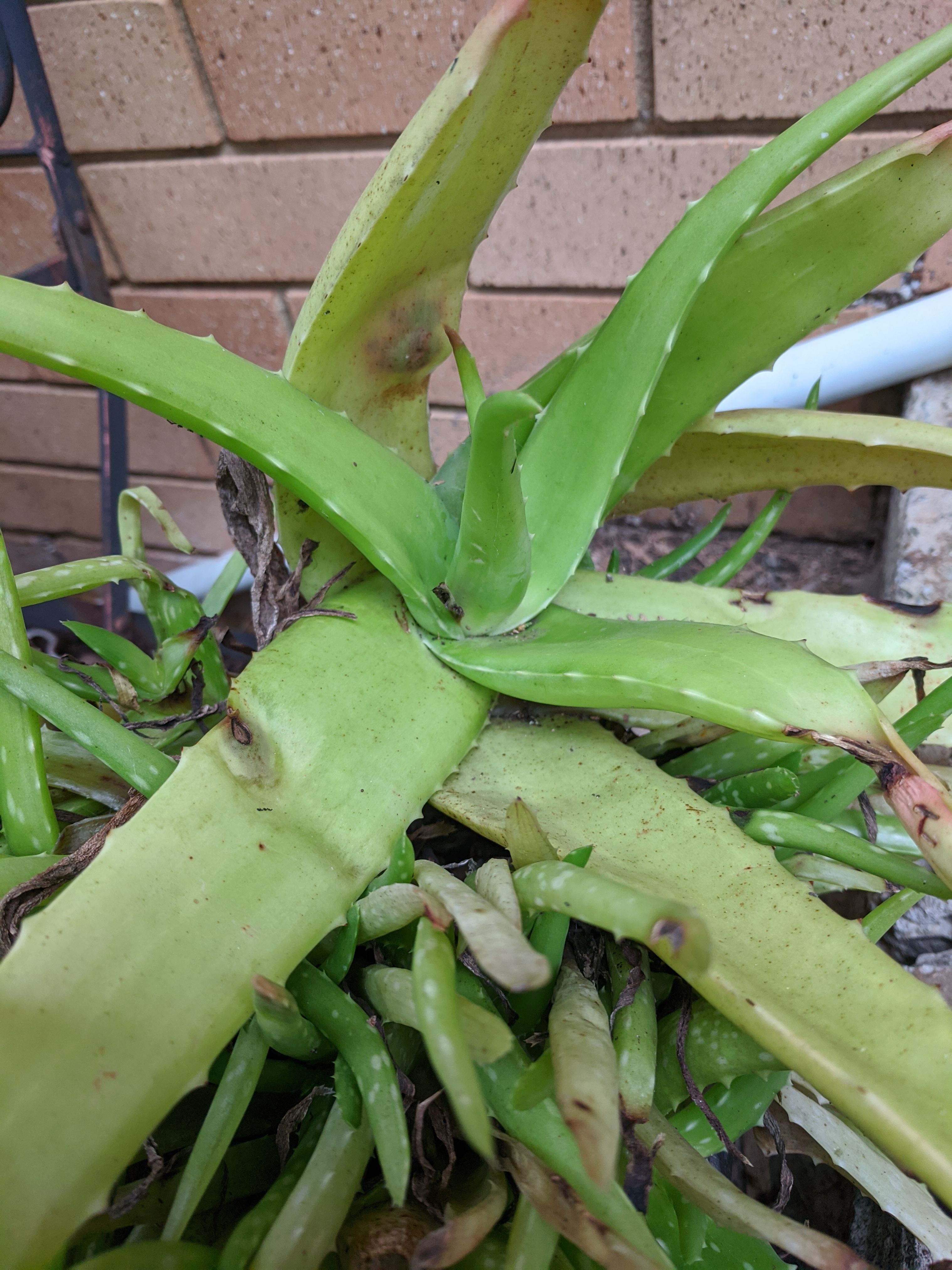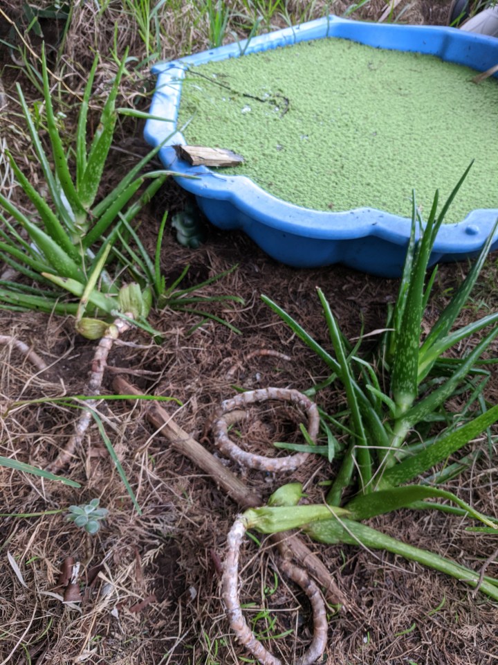 Aloe vera grown in the ground produces creeping rhizomes that easily spread taking over with dense growths of new pups as it spreads, impacting on native vegetation and monopolizing resources. It can also escape pots in this way.