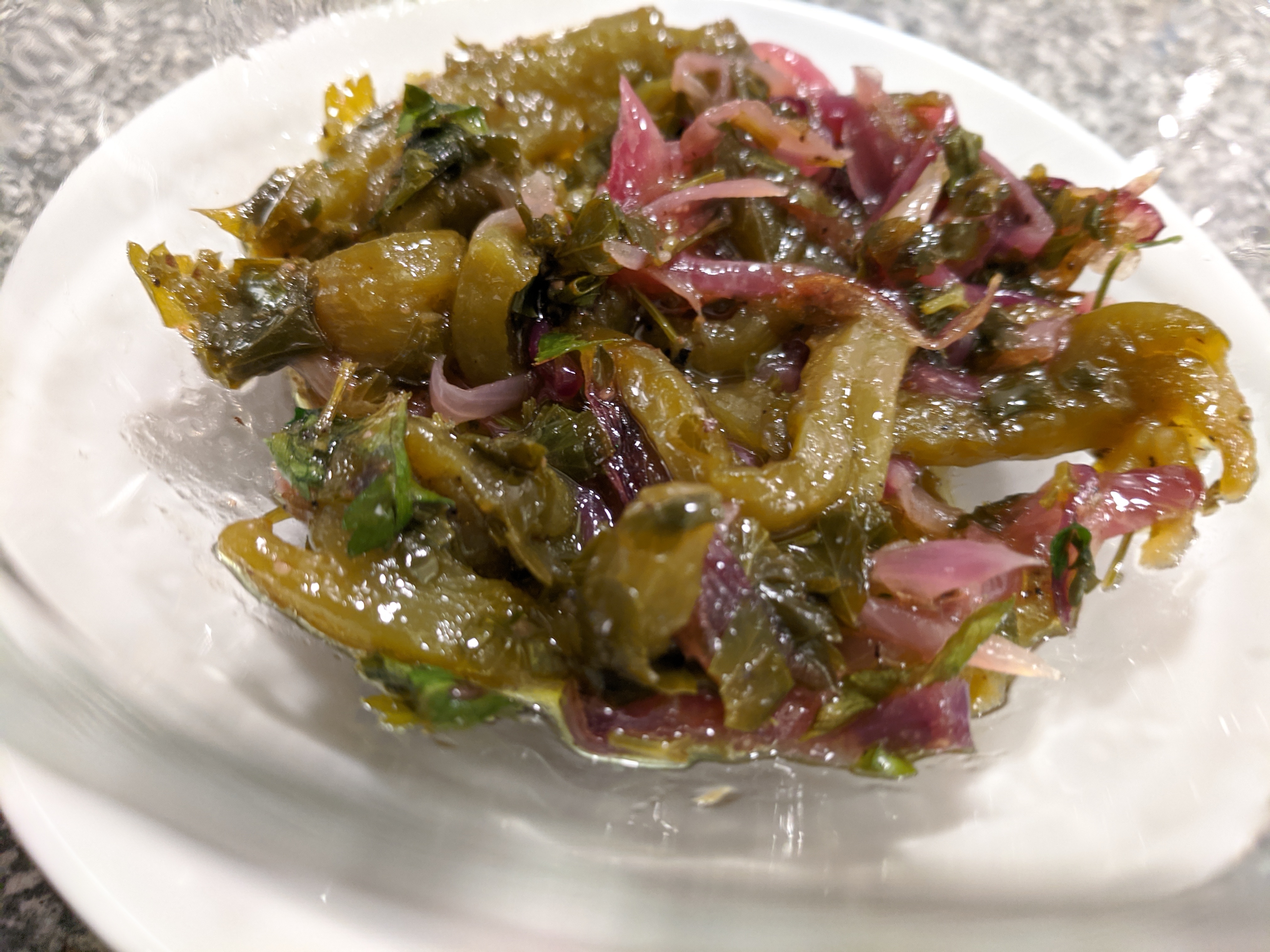 This recipe brings together green capsicums and the lovely flavour of oregano and parsley and the sweetness of caramelised red onion to make a really flavourful and delicious relish that is perfect for serving with lamb or other meat dishes.