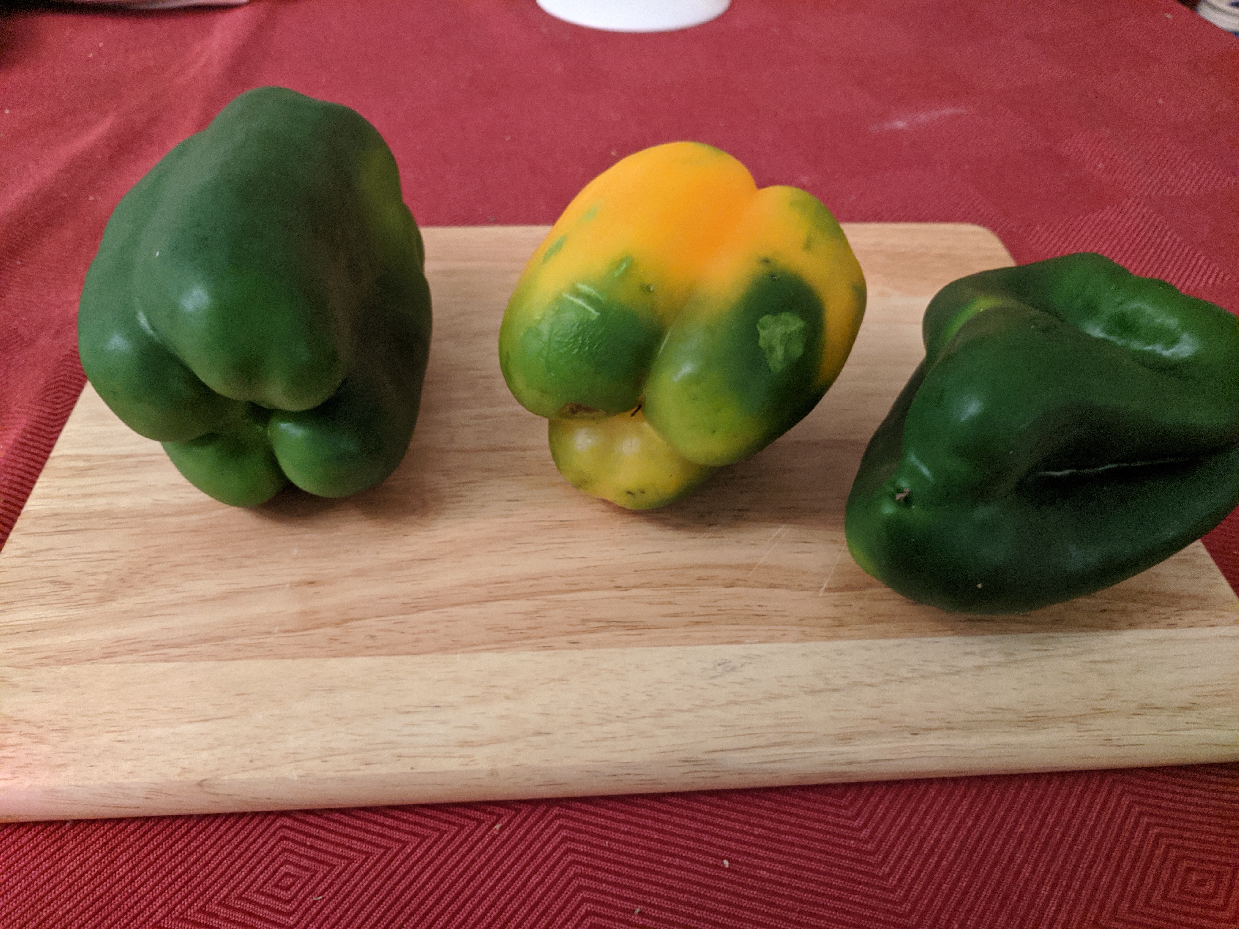 Recently I needed a red capsicum for a particular recipe and the most cost efficient way to get one was to buy a pack of 4 mixed colour capsicums. So there were 2 green and a green/yellow one left.