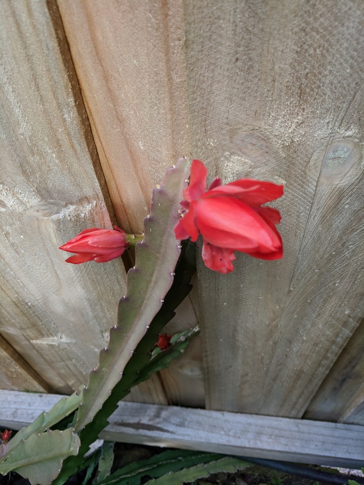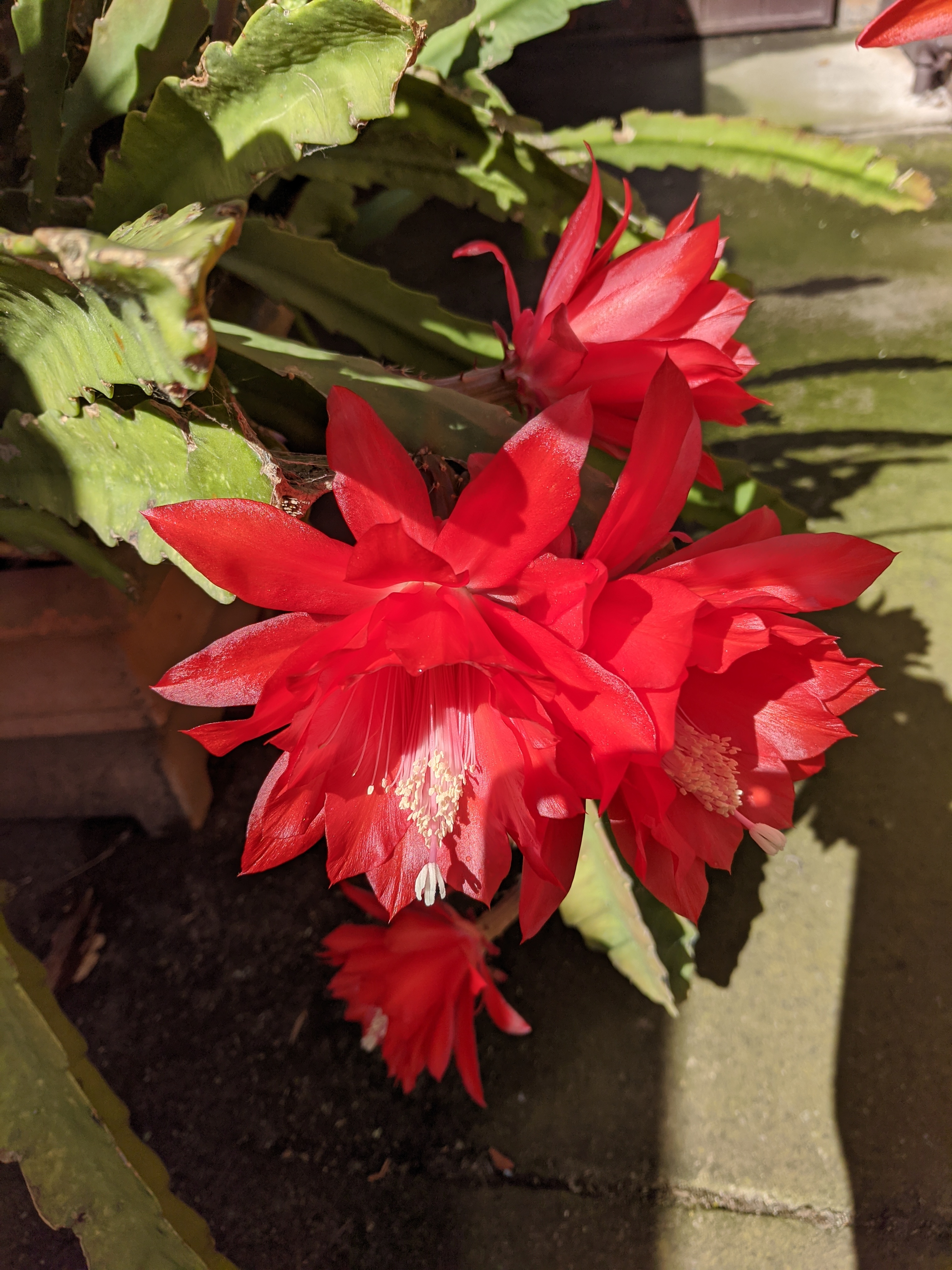 This bright red bloom is of the Disocactus × jenkinsonii and is a hybrid between Disocactus phyllanthoides and Disocactus speciosus. It is perhaps the most commonly grown orchid cactus and can to survive and flower under most conditions.