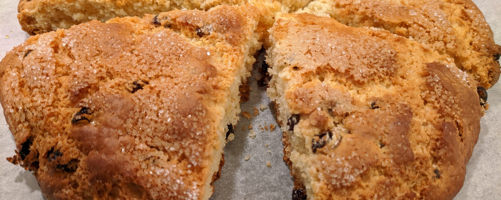 Made in the round and cut into wedges, they are light and have just enough currants to add that fruity flavour.