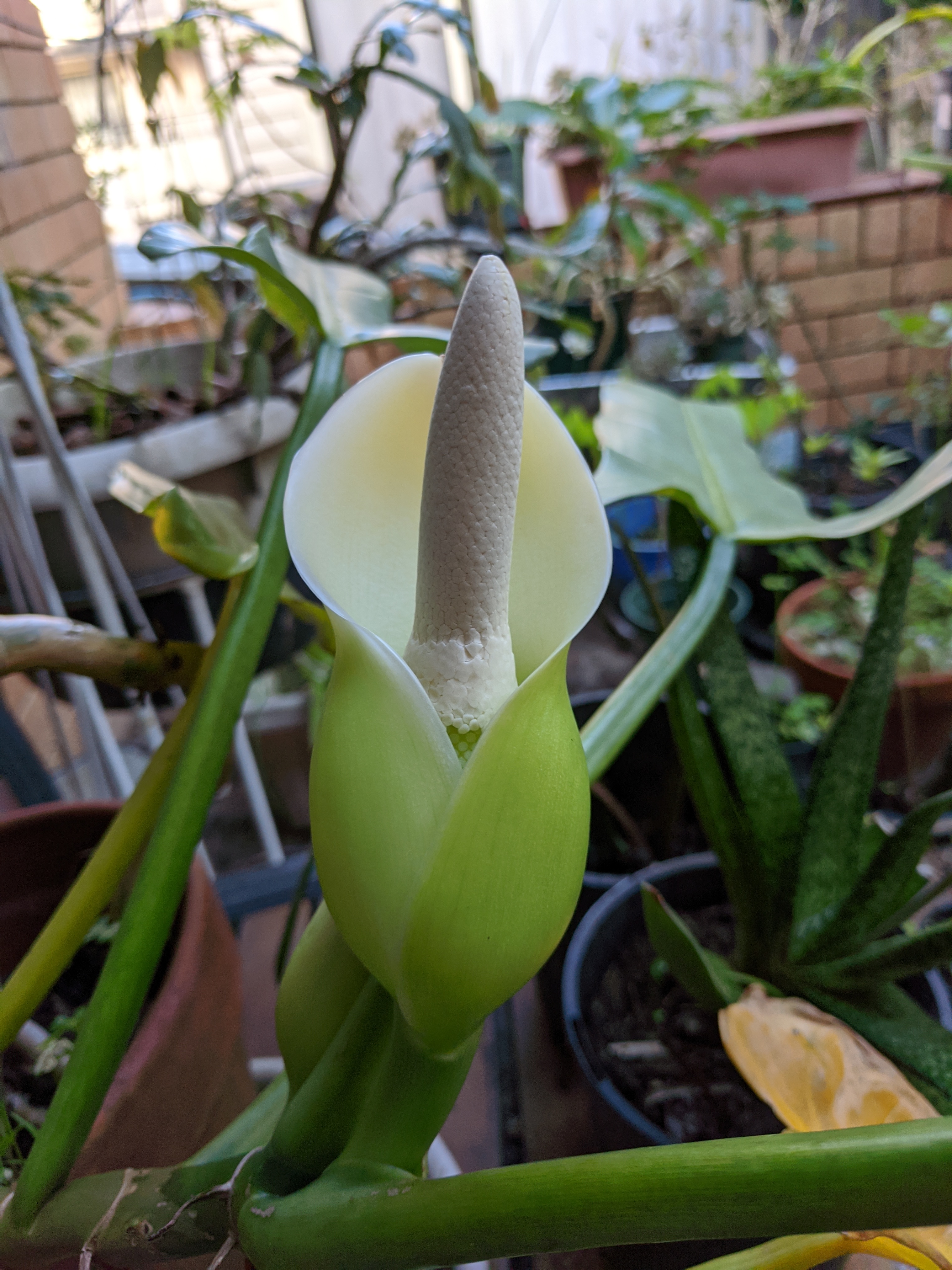 To my utter amazement two beautiful flower like inflorescences grew and unfurled one at a time over couple of days and having done some research, I came to understand what an amazing plant the Philodendron hastatum really is.