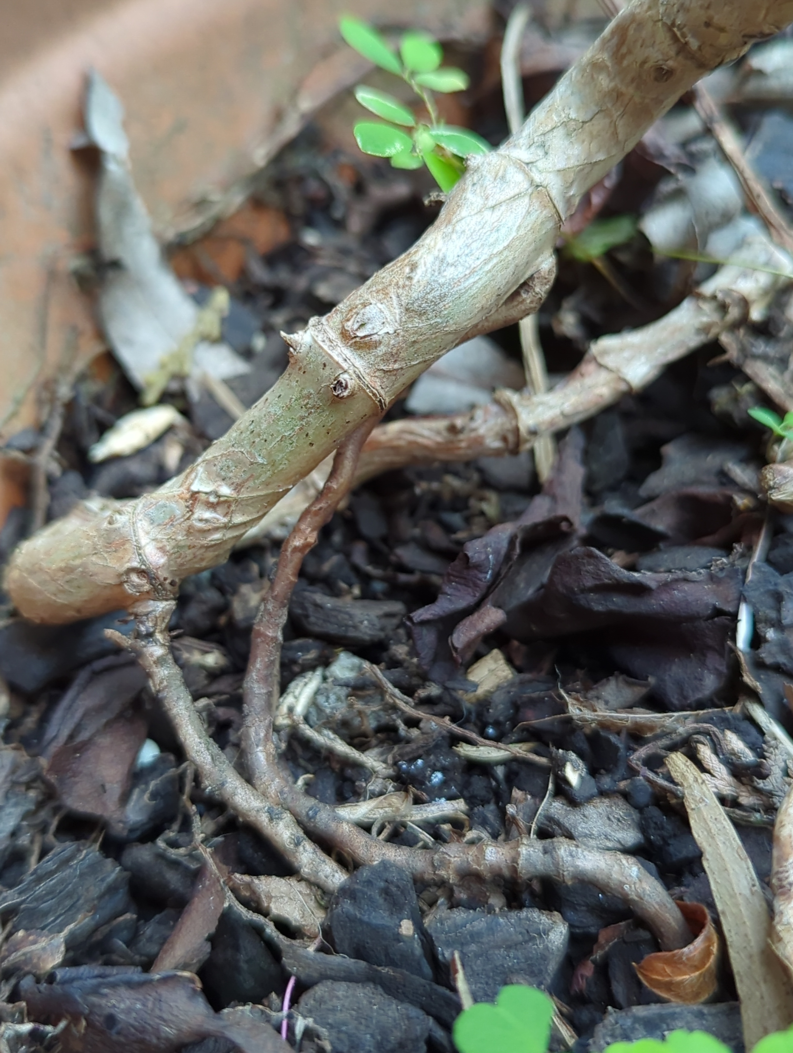 My little plant tried desperately to find something upon which to climb but 5 years ago we knew nothing about this and so it remained amongst similar sized pots and in its juvenile state.