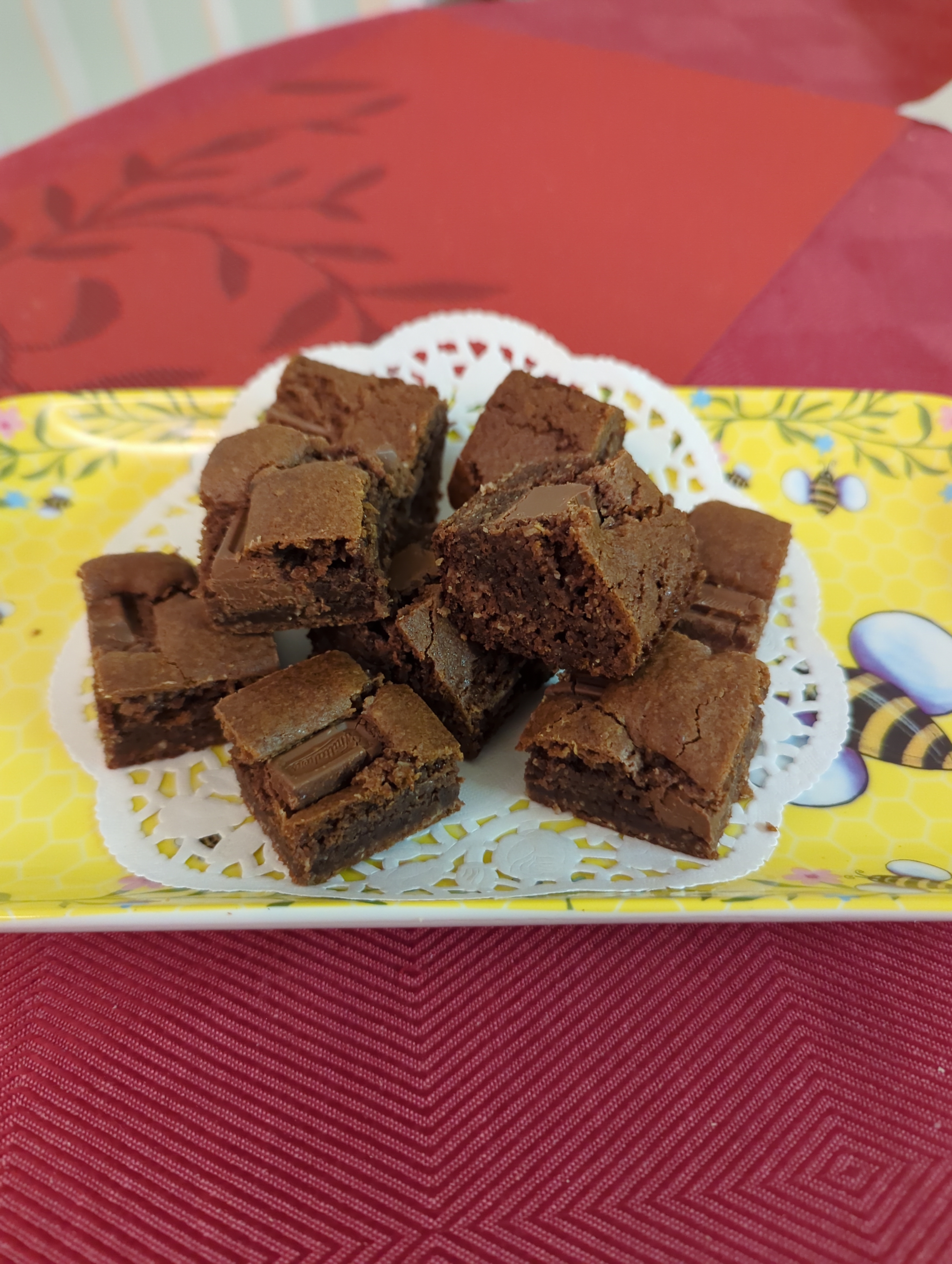5. Cook in moderate oven 180C for 30-35 minutes (not more, as lose fudge texture- maybe a minute or two less, depending on oven)