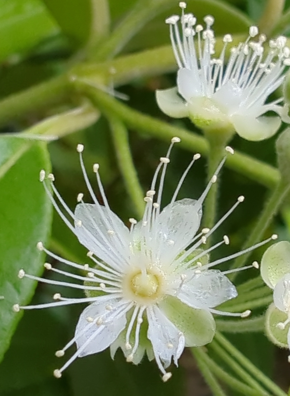 By late December the petals and stamens had fallen. After petal fall, the calyx is persistent (does not wither and fall as happens in other flowering plants) and remains as the fruit containing the seeds develop. The plant then has clusters of the attractive green flower-like calyx lobes which add another beauty to the overall plant.