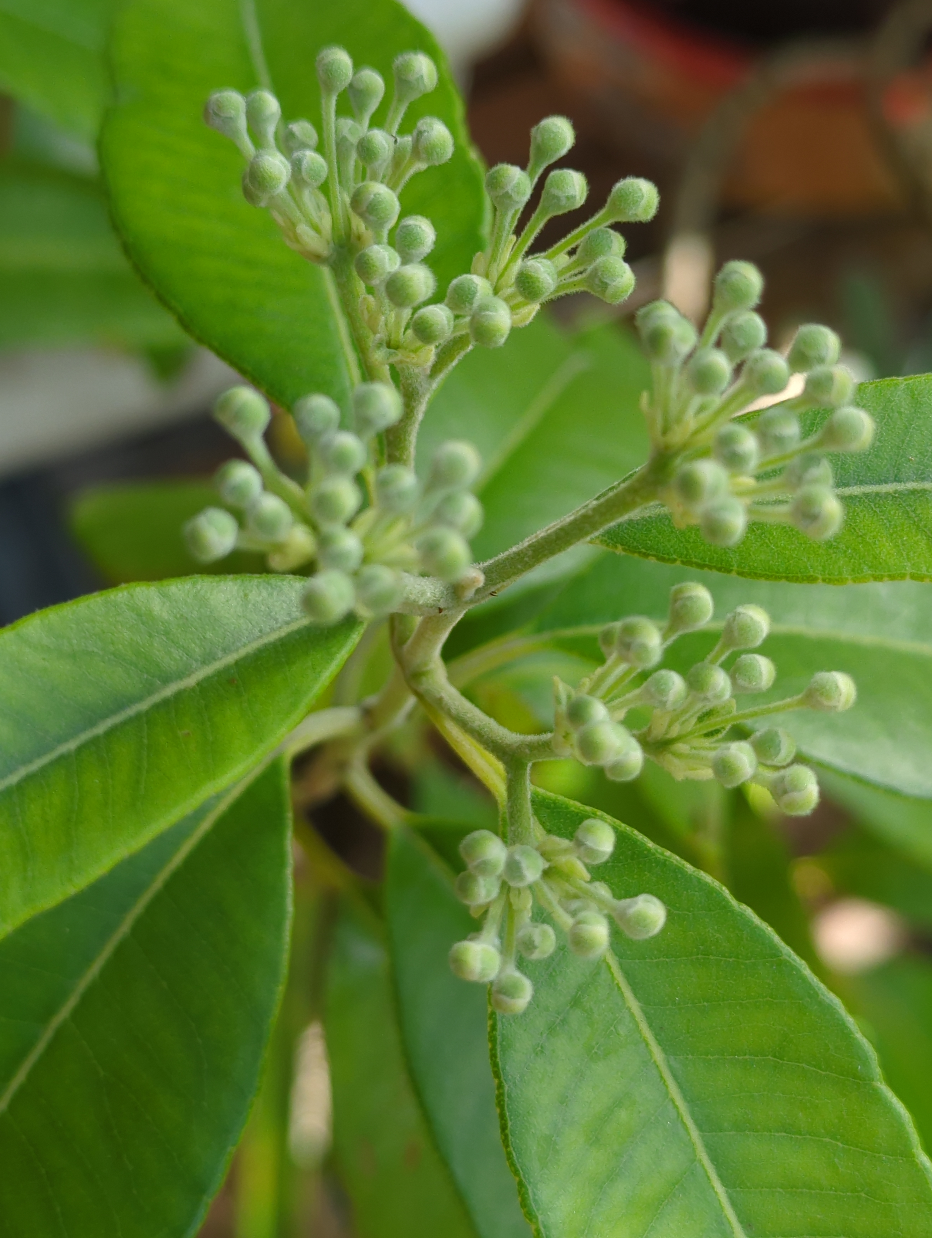 Once the clusters of buds form at the end of the branches the leaves on the branches continue to form as the clusters develop.