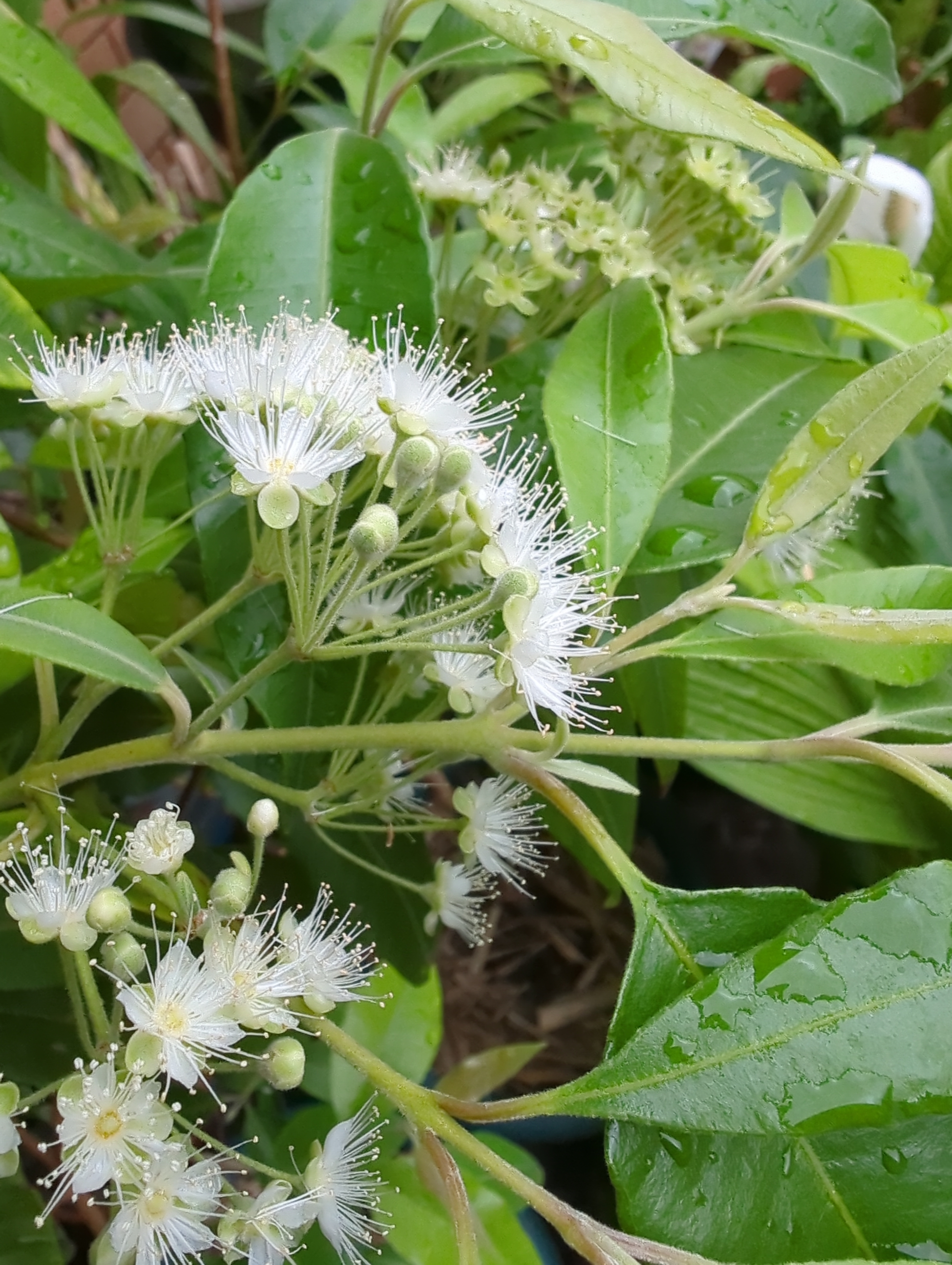 The weeks when the lemon myrtle is is flower is a special moment to witness. The beautiful, delicate bunches of flowers all over the plant that peep through the new leaves create a spectacular fragrant display, even on a small potted plant.