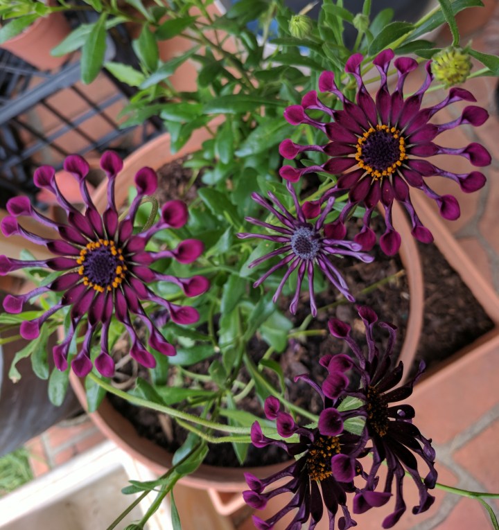 Some cultivars have spooned ligules as shown in the image below of a potted Osteospermum