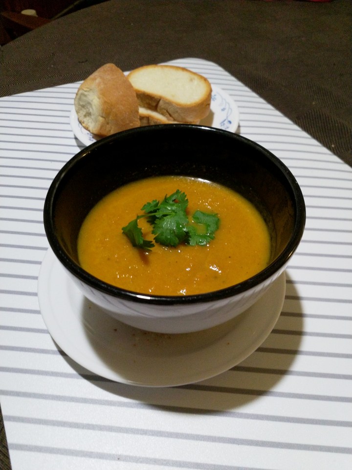 This soup is is a rich mix of sweet carrots and celery, with spicy taste and fragrance of freshly roasted and ground coriander and cumin seeds, and made hearty by the addition of chickpeas to make it a really healthy meal.