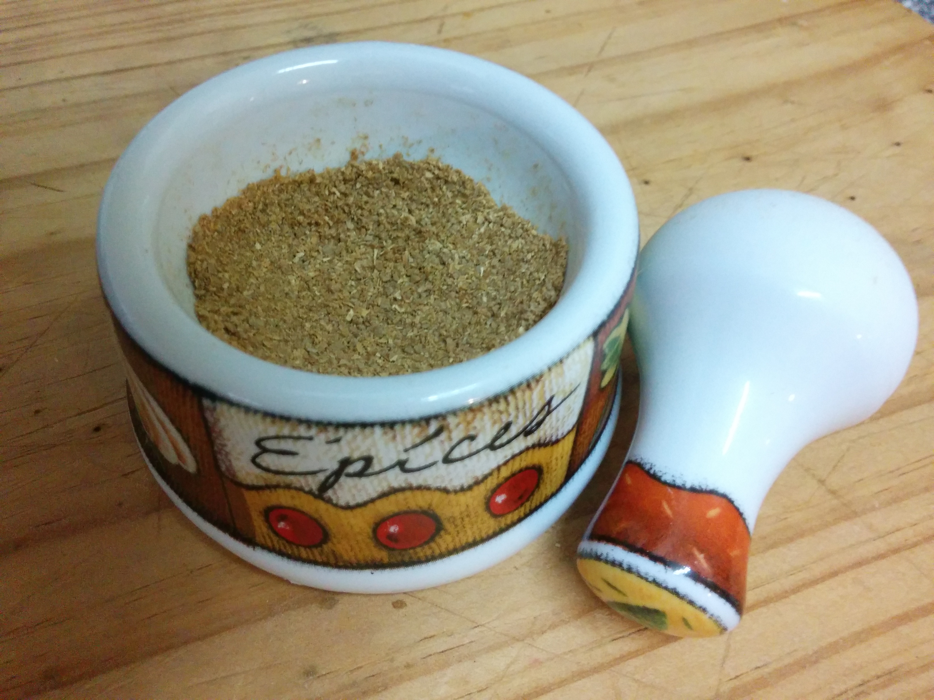 4. Once cool to the touch, grind the seeds individually with a mortar and pestle, or a spice grinder, to a fine mix