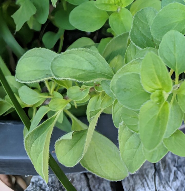Greek oregano (Origanum vulgare hirtum) that has a peppery bite and a minty aroma can be distinguished from other varieties by the hairy underside of is leaves which also have hairy edges as can be seen in the image below. (click on the image for greater detail) The veins are also prominent on the underside of the leaves. it is considered the best all-purpose culinary subspecies