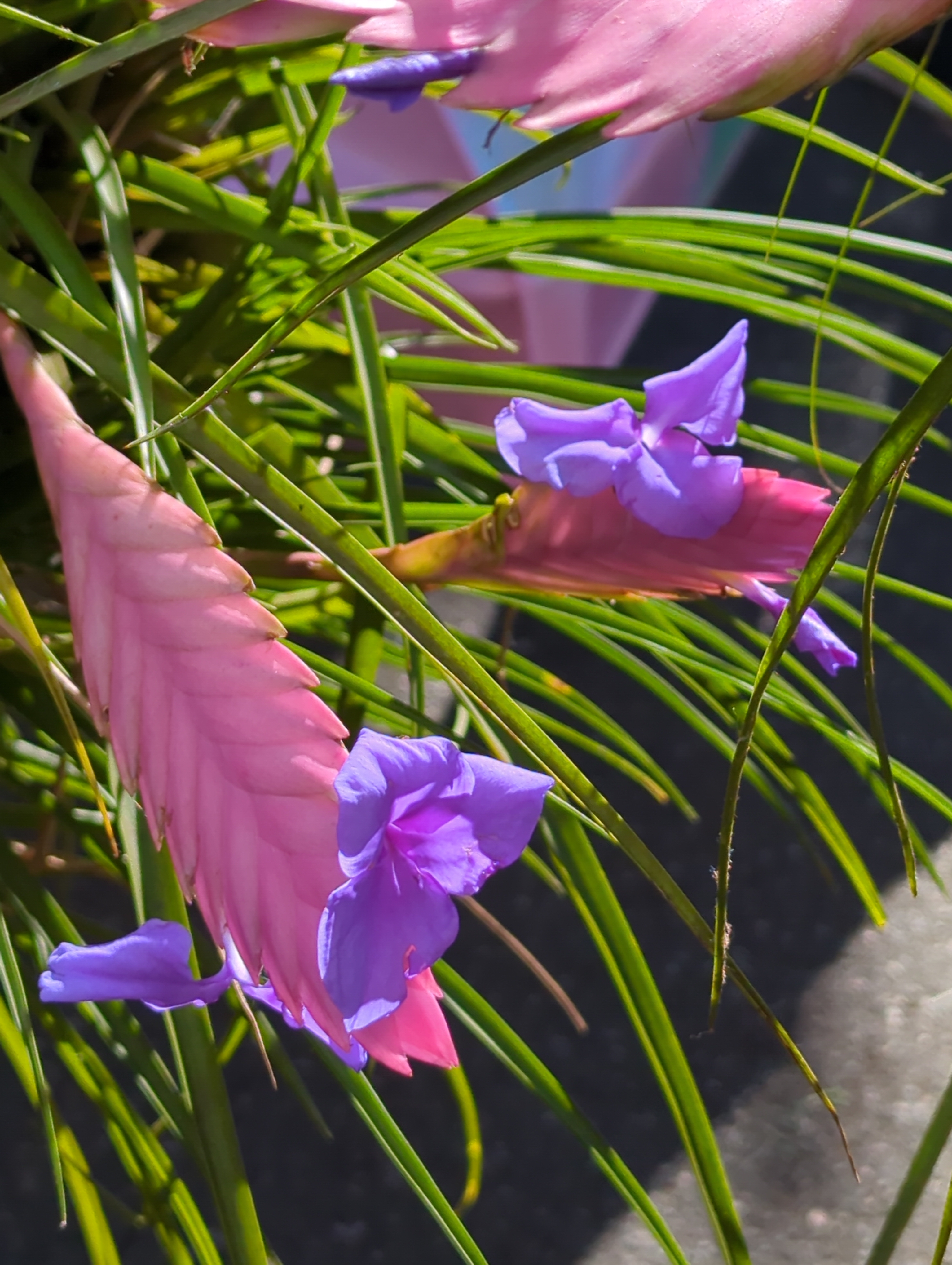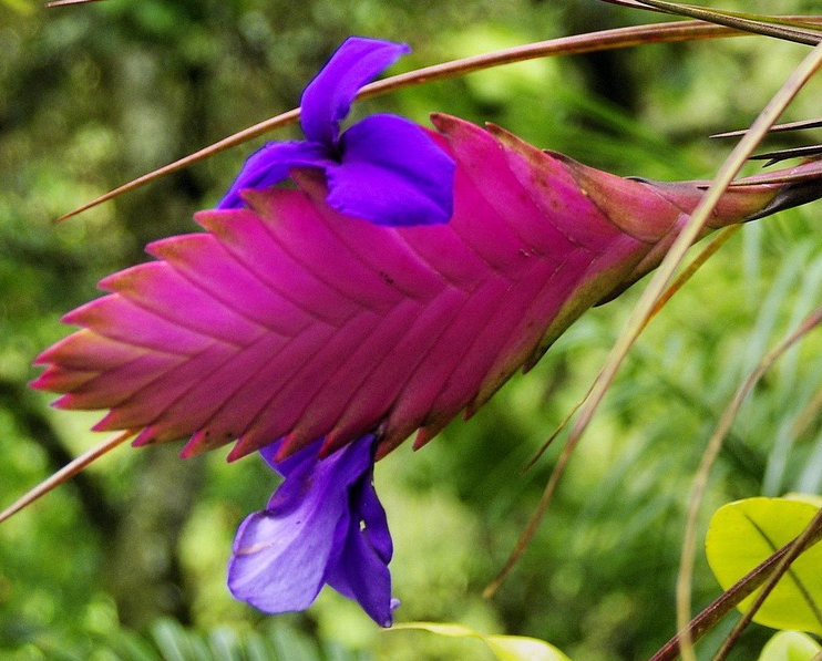 The beautiful Wallisia cyanea, is a species of plant in the bromeliad family and is commonly called Pink quill. It was formerly placed in the genus Tillandsia, but following DNA analysis, was reassigned to the genus Wallisia.