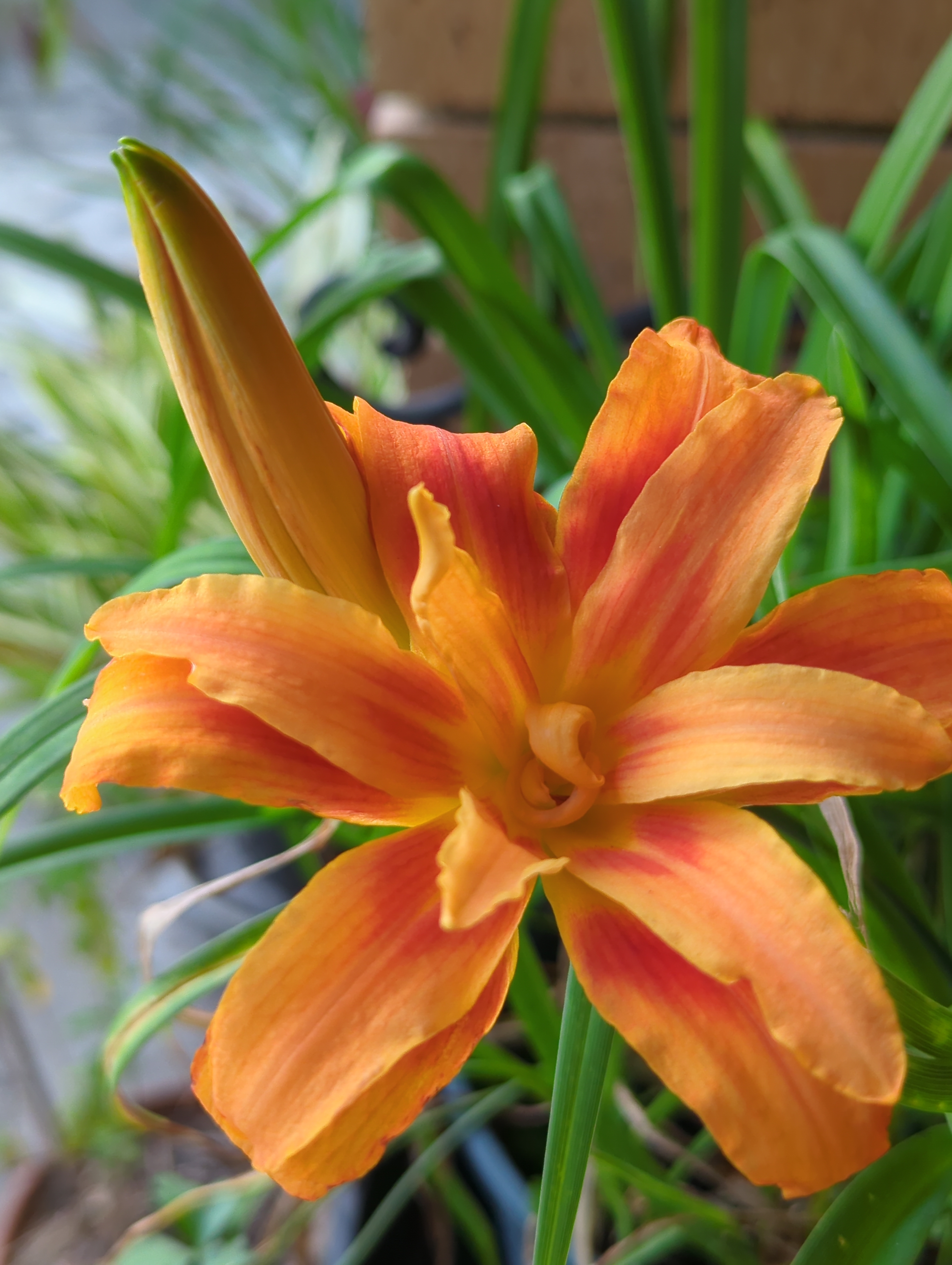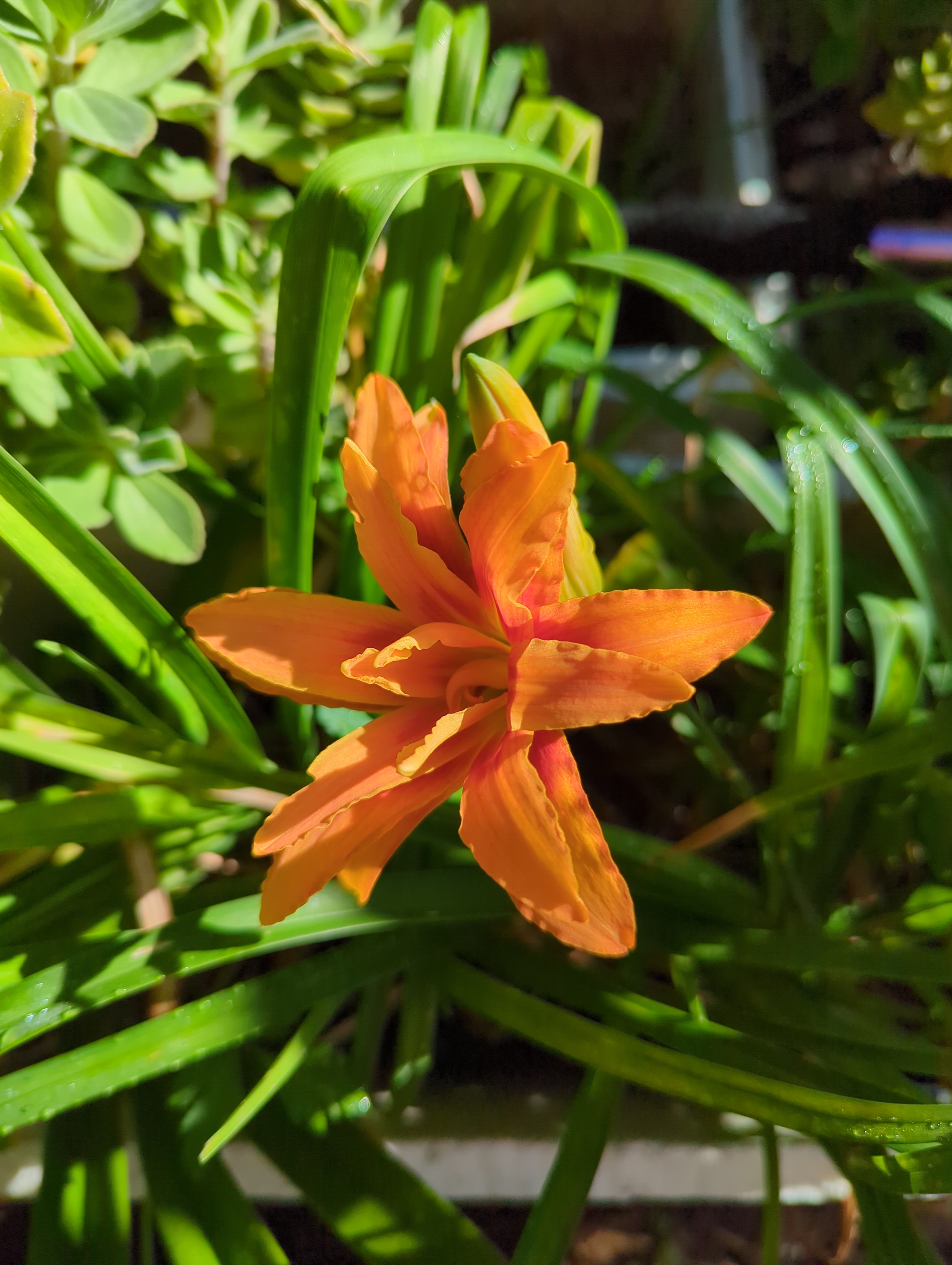 Hemerocallis fulva ‘kwanso’, the double orange daylily, is a beautiful species that is not related to the Liliam family but is part of the Asphodelaceae family. It is native to Asia from the Caucasus east through the Himalaya through China, Japan, and Korea and now widely grown throughout the world